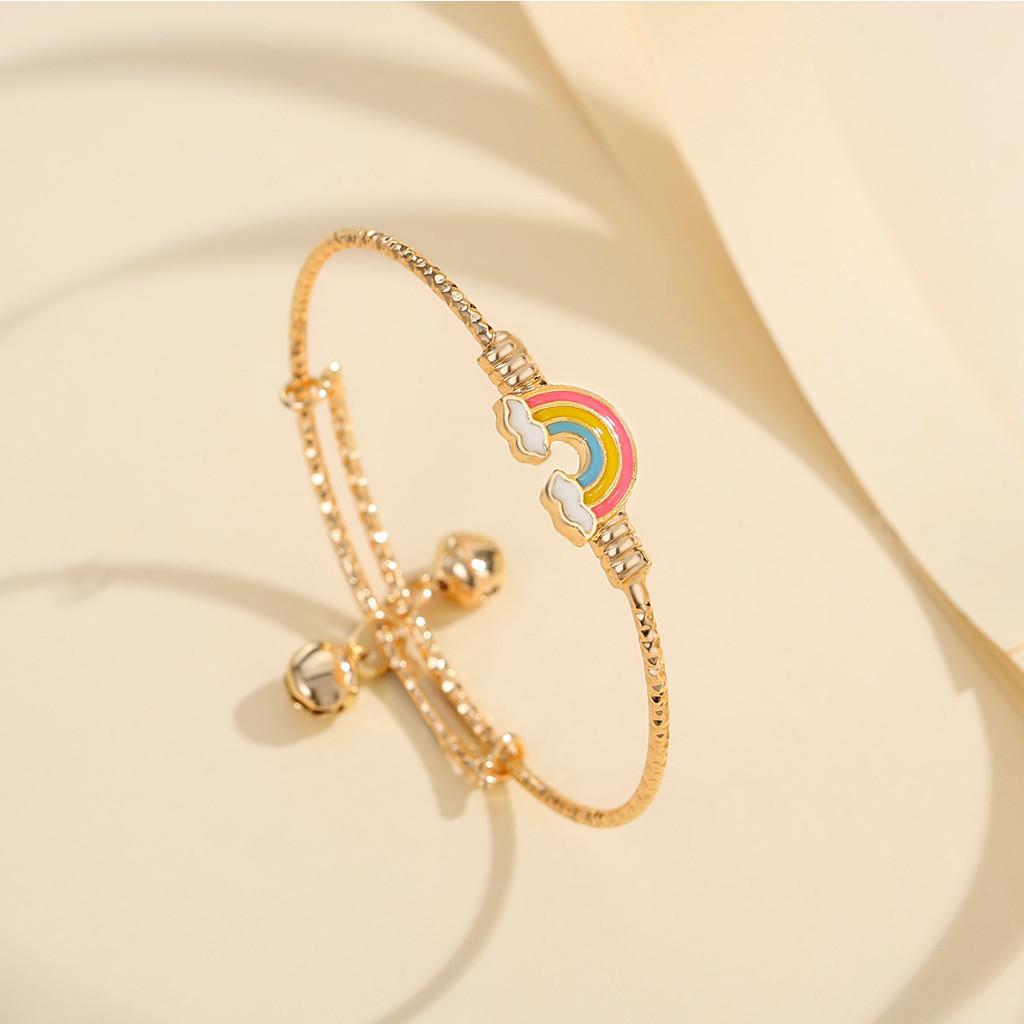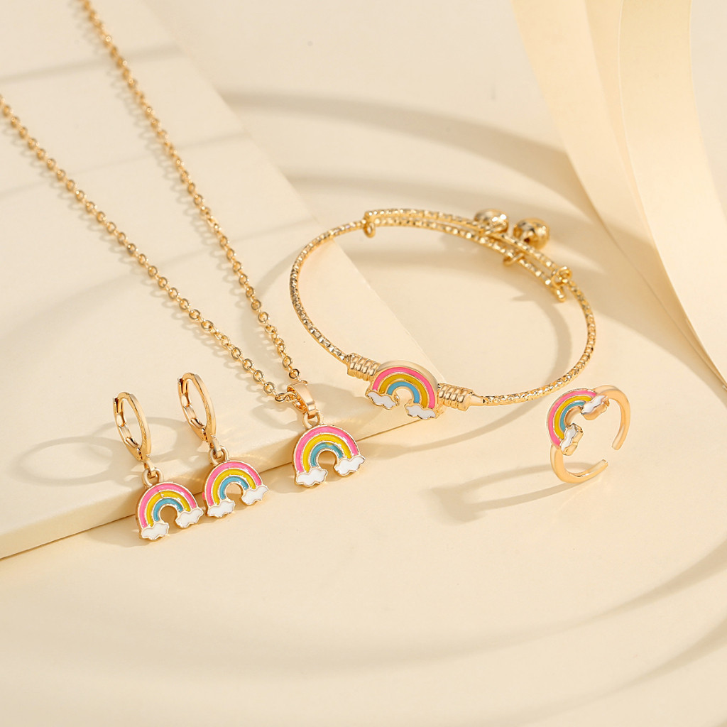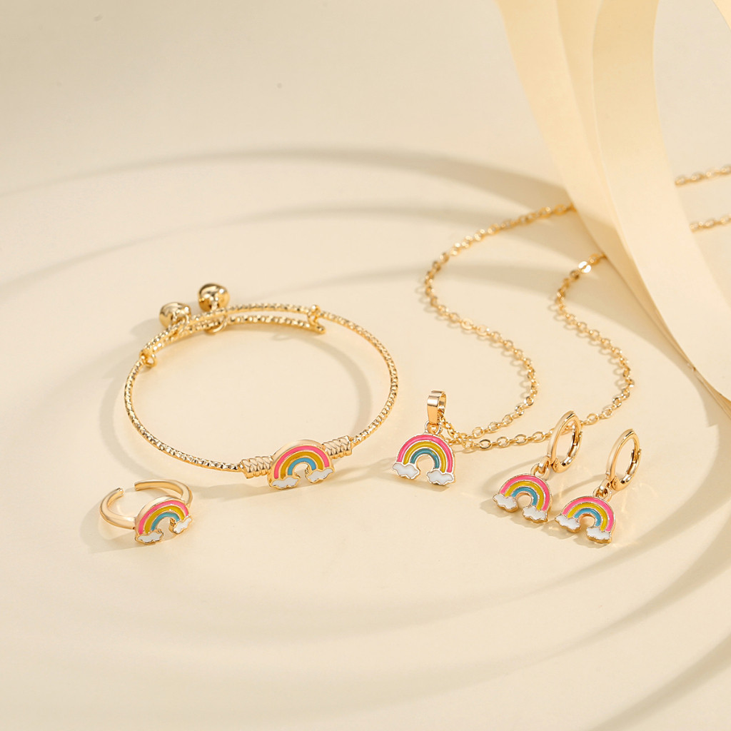 Set Perhiasann Anak Pelangi Titaniumm Asli Gelangg Cincinn Antingg Set Anti Karat Aksesoriss Anak Perempuan Y477