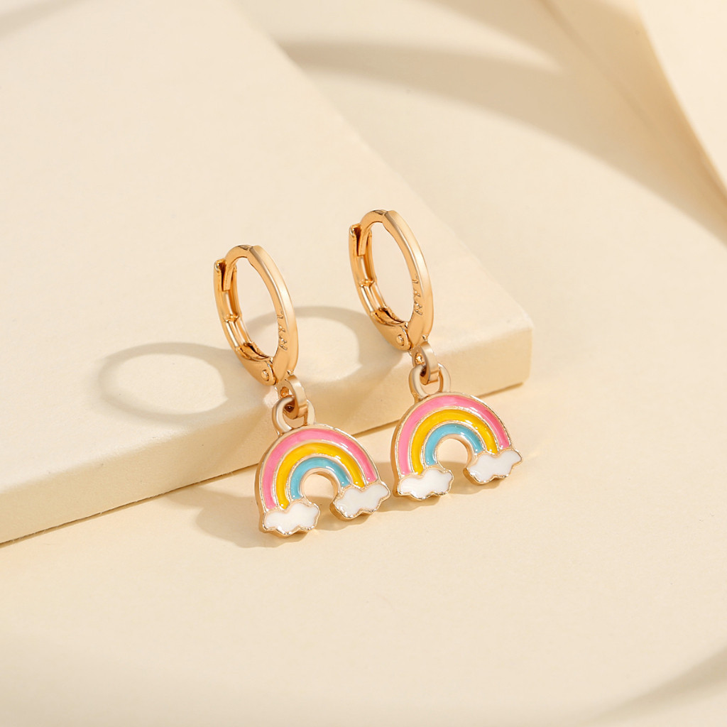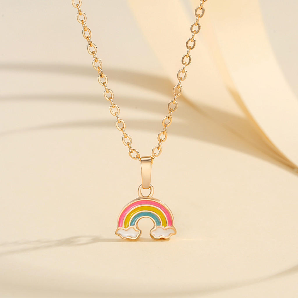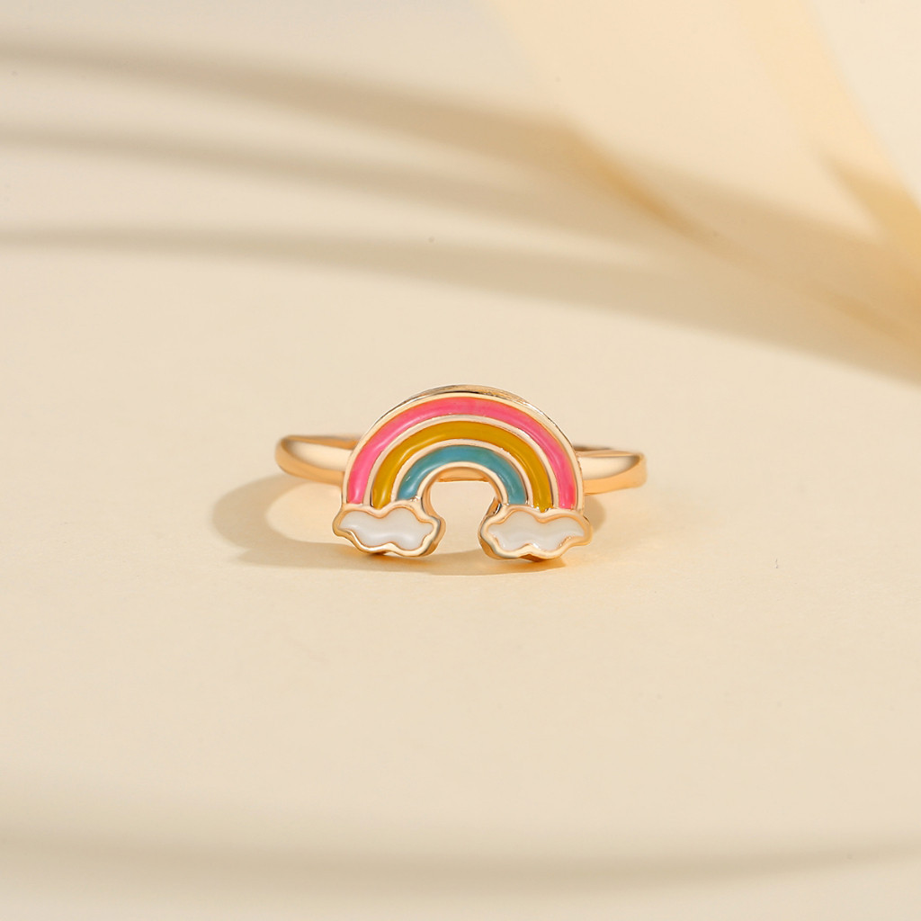 Set Perhiasann Anak Pelangi Titaniumm Asli Gelangg Cincinn Antingg Set Anti Karat Aksesoriss Anak Perempuan Y477