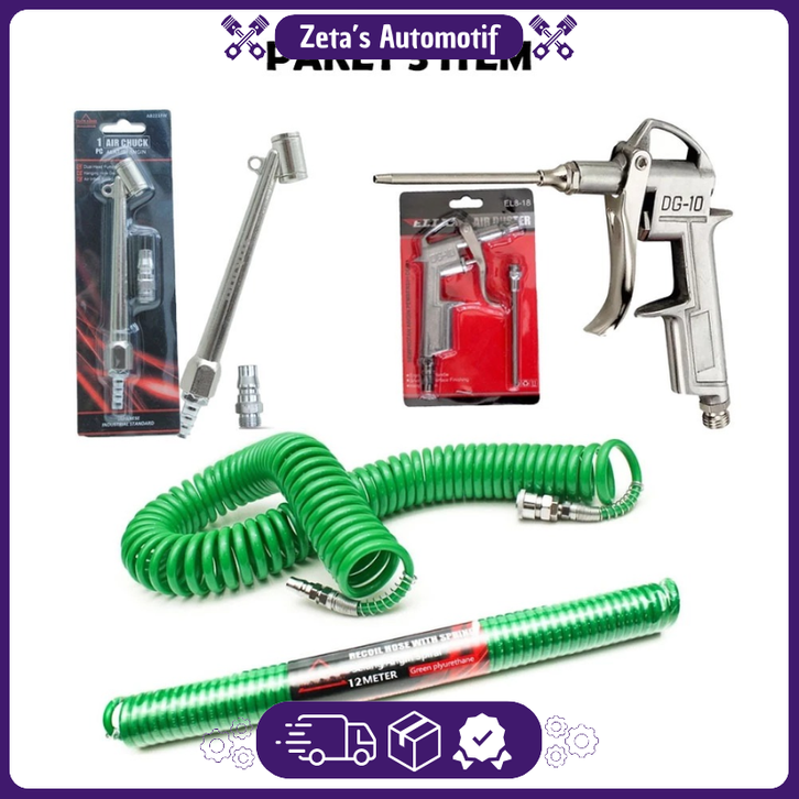 Paket Alat Service 3in1 Selang Angin Kompresor Recoil Spiral - Alat Semprot Angin Air Duster Gun DG-10 - Alat Isi Angin