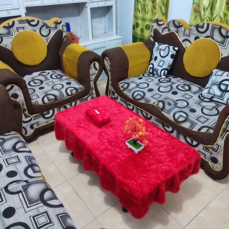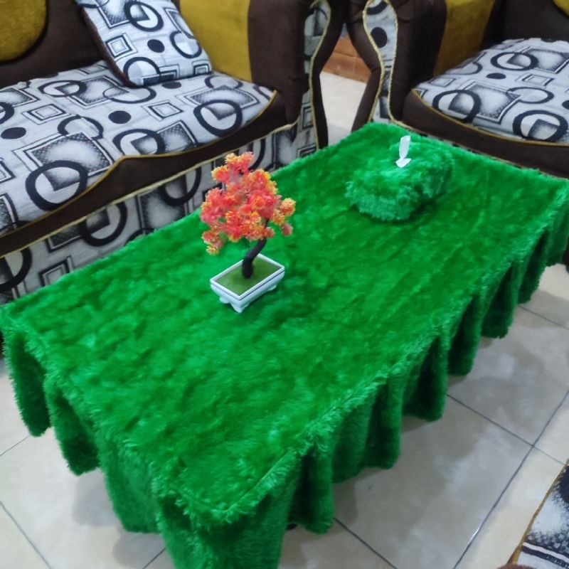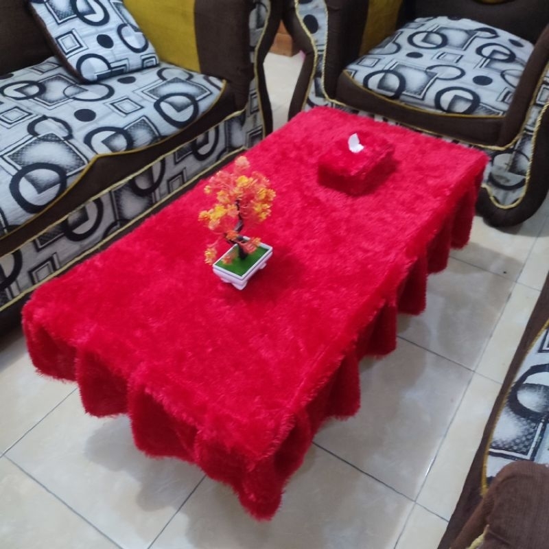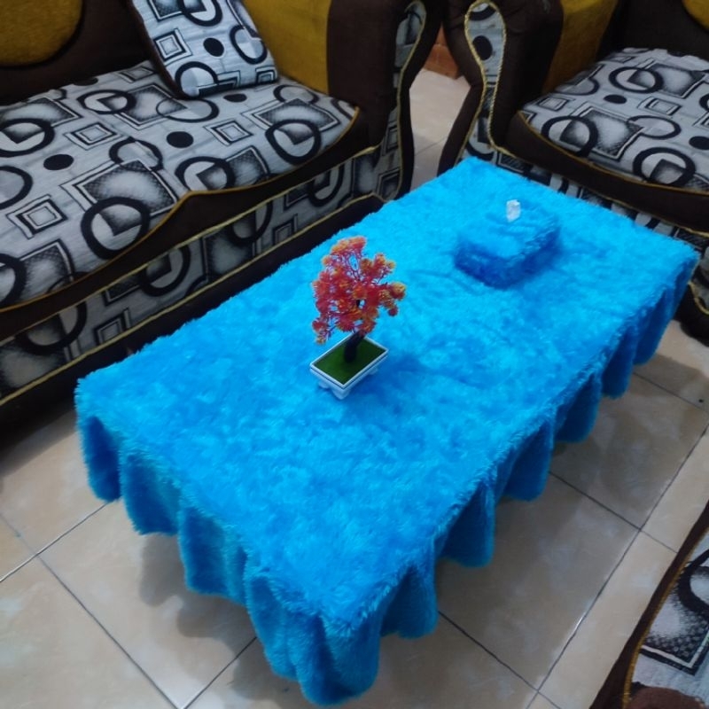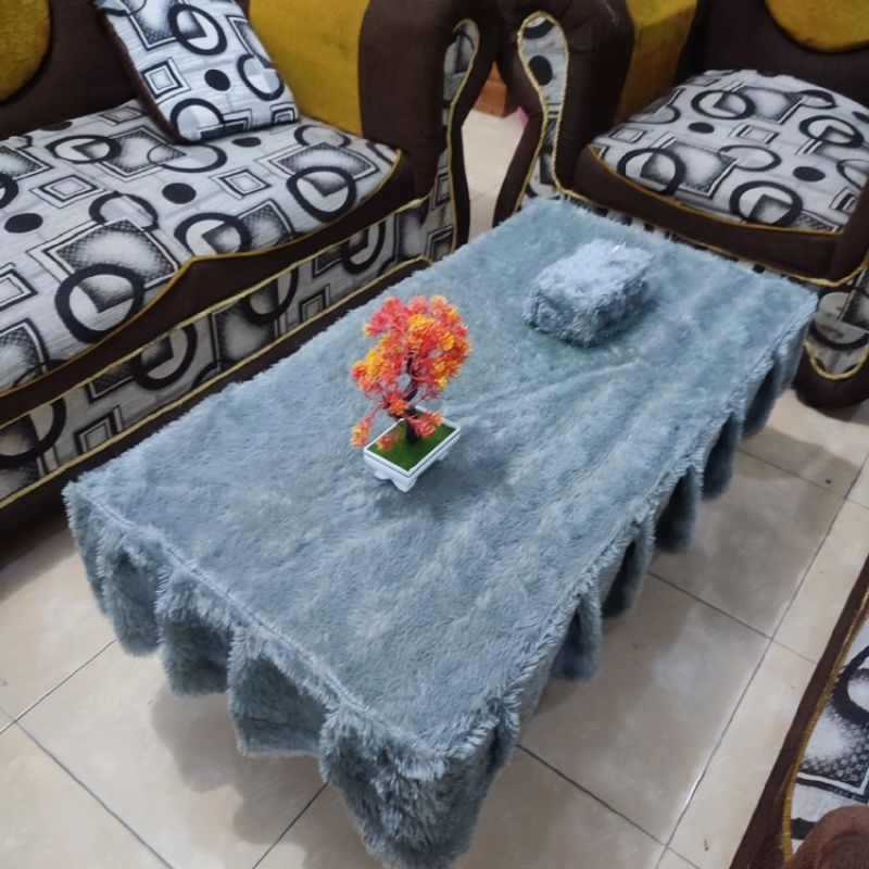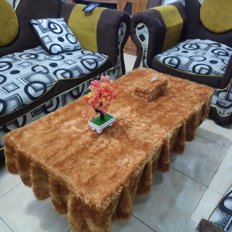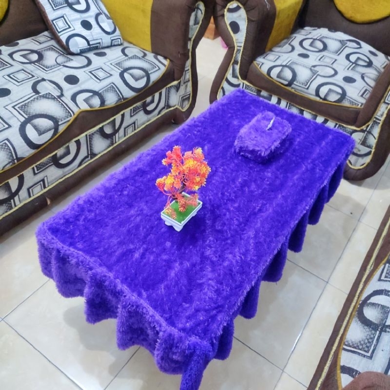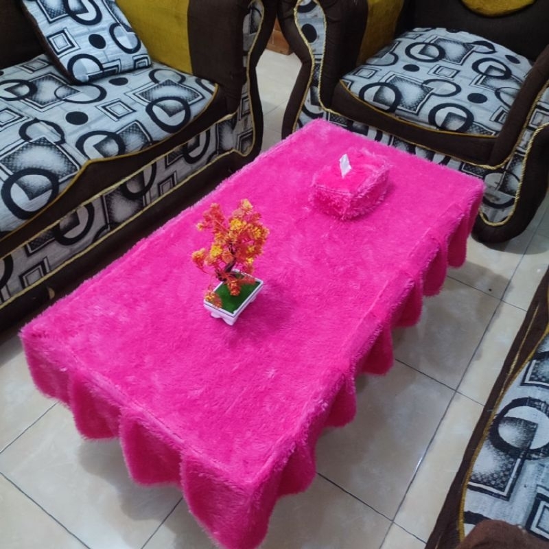 Taplak Meja Rumbai Polos + Sarung Tisu / Bulu Raspur / Uk 100 x 50 x 20 / Taplak Ruang Tamu