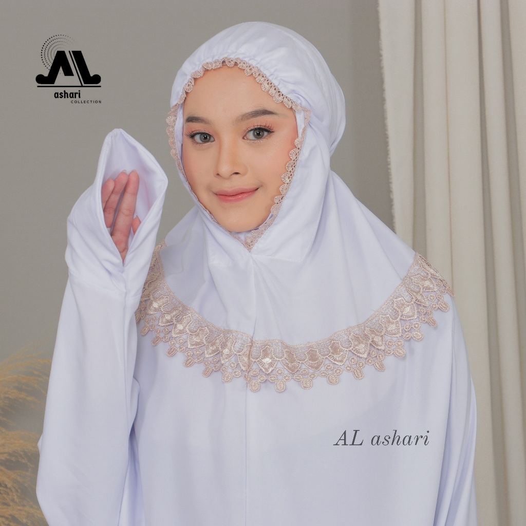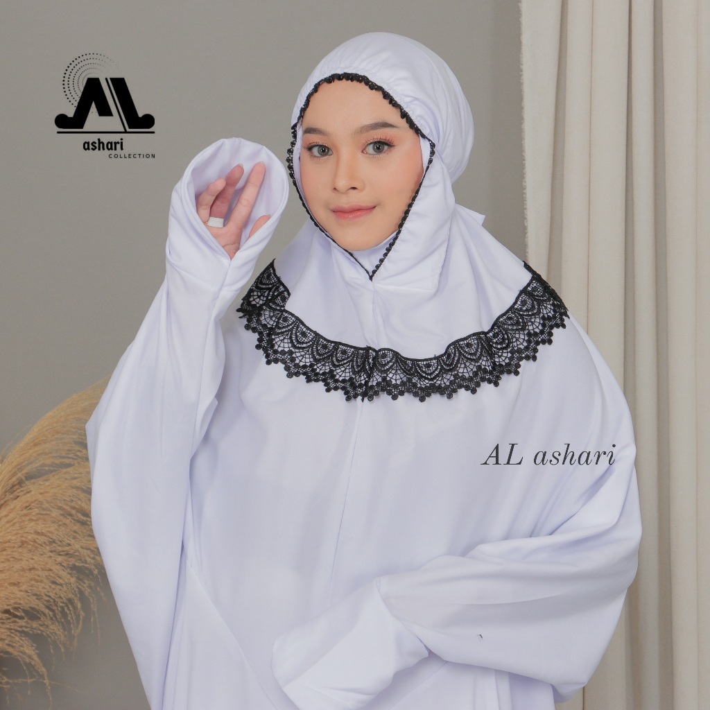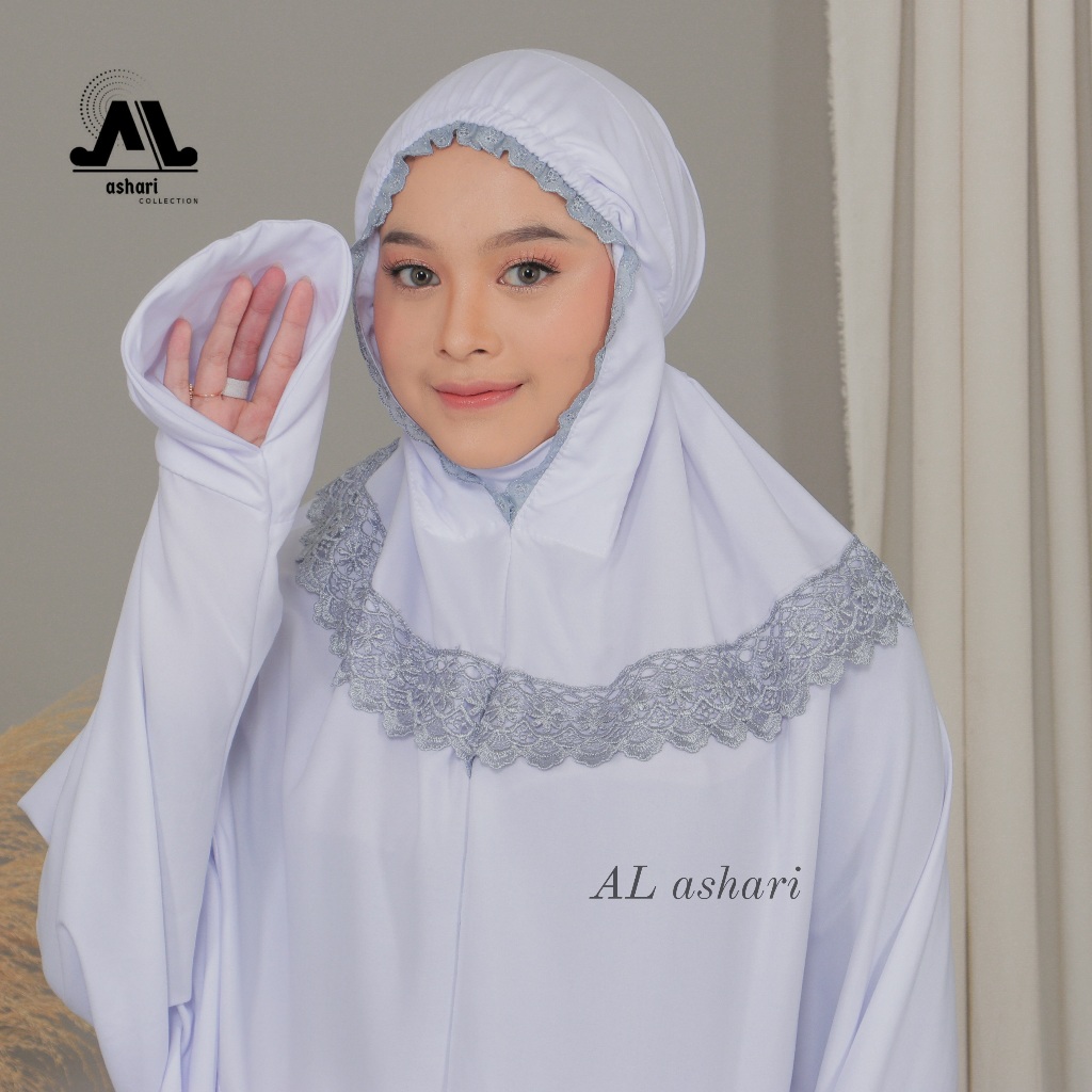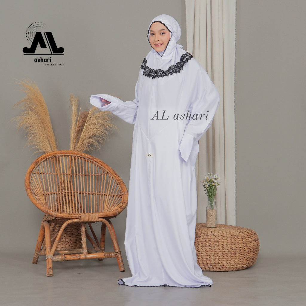 Mukena Terusan Dewasa Katun Putih Polos – Mukena Traveling Jumbo Renda Zipper Kalung Elegan Adem Nyaman
