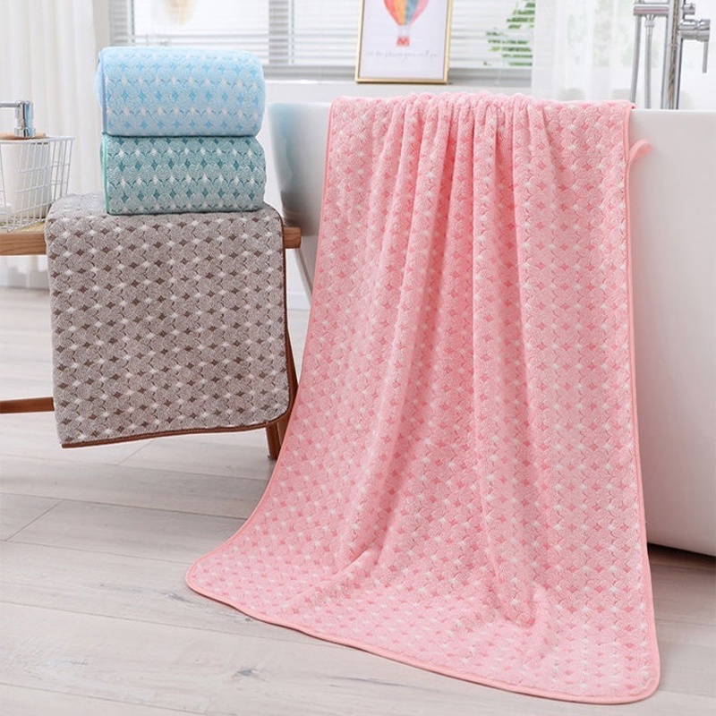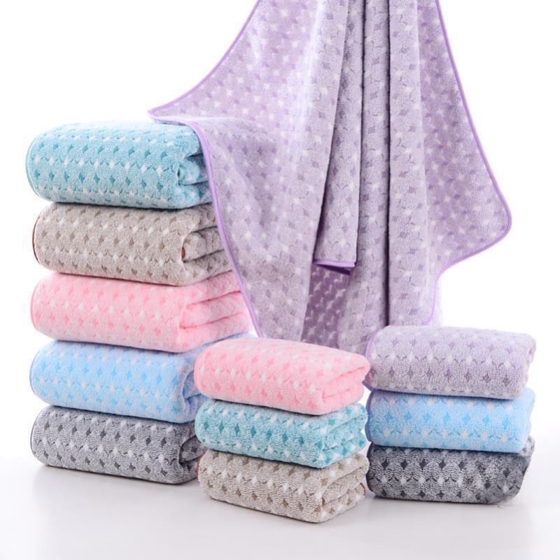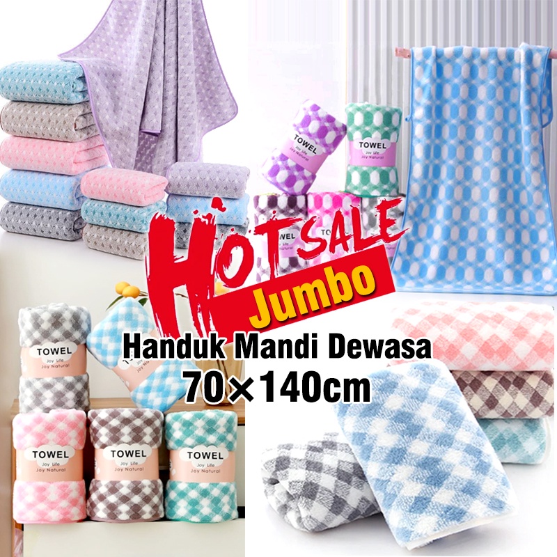 Handuk Mandi Dewasa Quick Dry Microfiber Bulu 70x140 Garis Tipis Super Serap Air Lembut Keramas