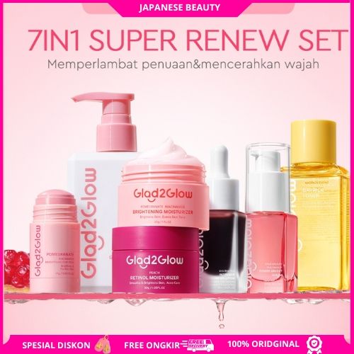 【Paket Hemat Mencerahkan】Glad2Glow Renew bundle all in 1 7in1-Brightening toner+Menghilangkan sel kulit mati Brightening