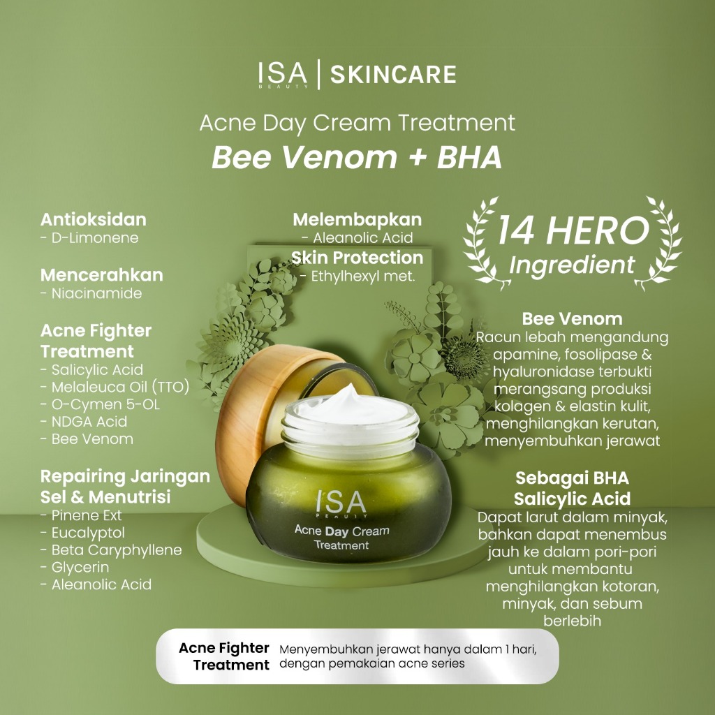 ISA BEAUTY Day Cream AcneTreatment UV Filter 20gr - Krim Wajah Untuk Mengurangi Jerawat Dan Kemerahan - Moisturizer Pele