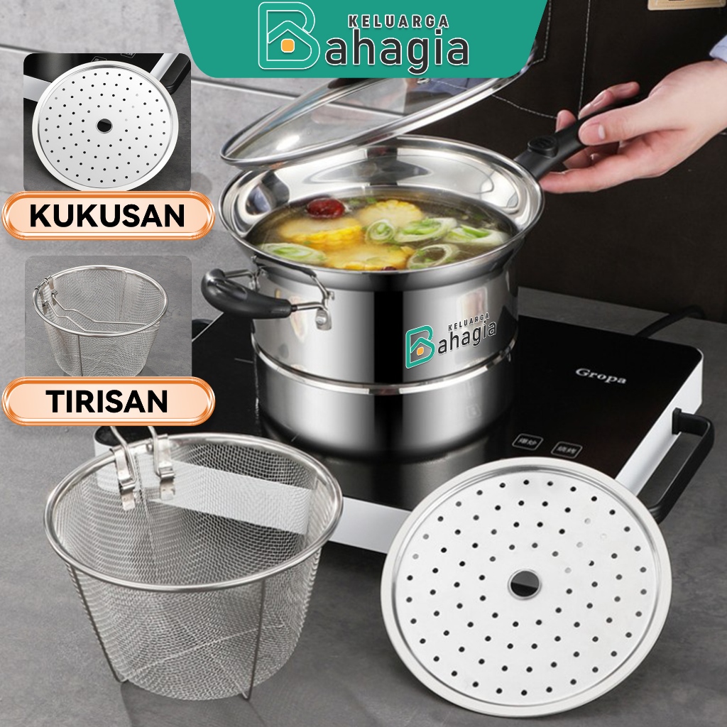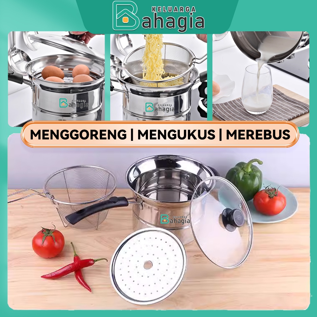 [KB] Panci Set 3in1 Kukus Rebus & Goreng Stainless Multifungsi Aneka Masakan Crispy