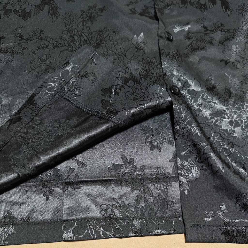 COOLCOOL Flower Jacquard Embroidery Black Loose Short Sleeve Men's Casual Shirt CoolCool Official