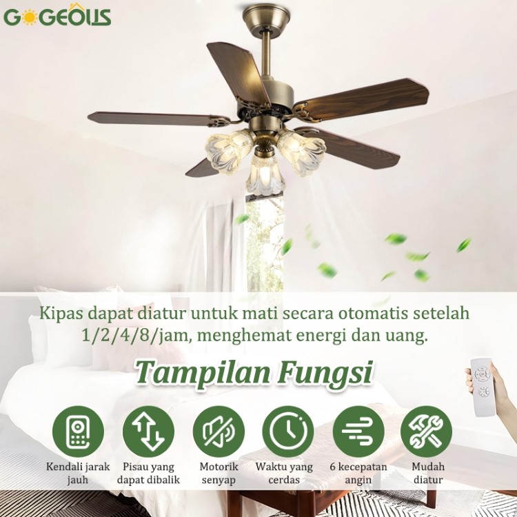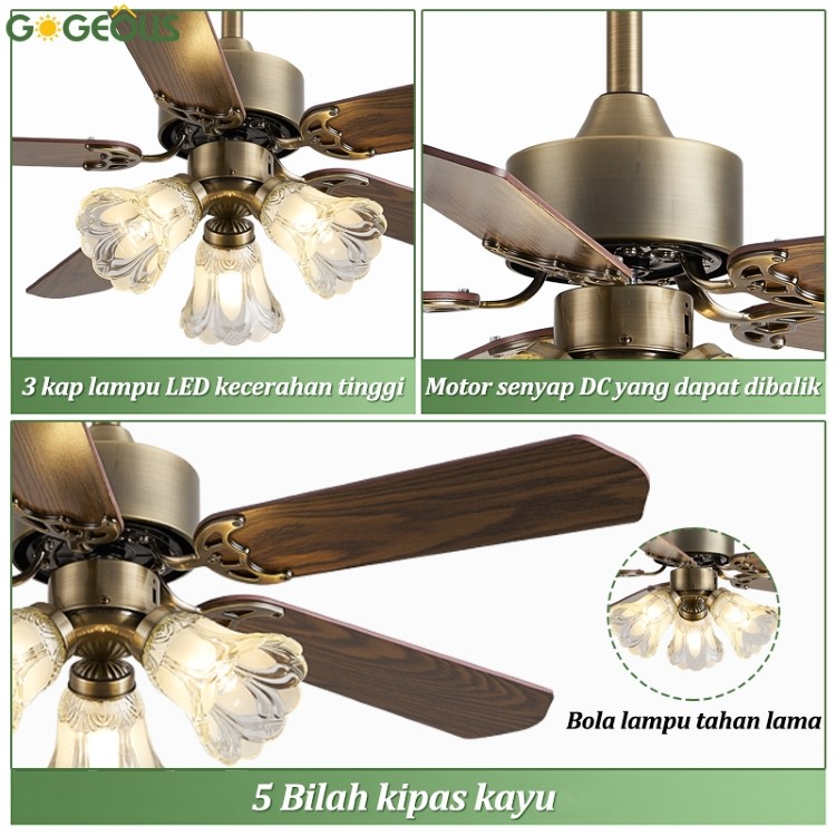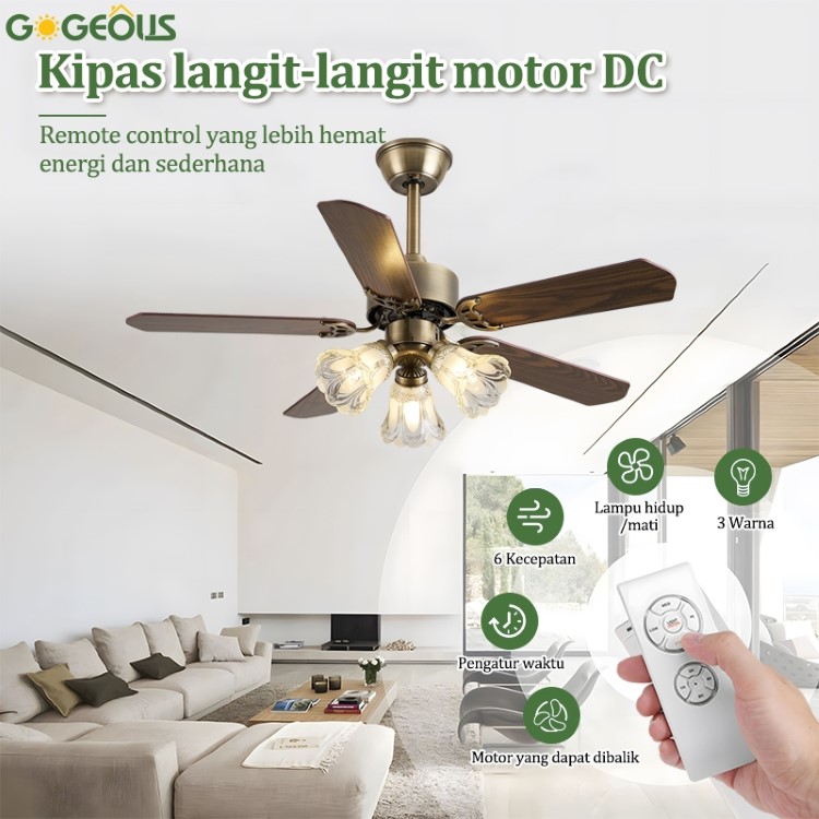 Kipas Angin Lampu Gantung Lampu Kipas Angin Plafon 48/52Inci E27 3 Warna 6 Kecepatan Kipas Lampu Gantung Plafon Remote