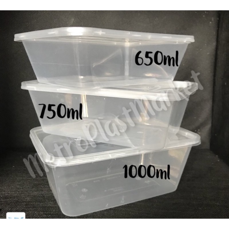 Thinwall kotak 500ml 650ml 750ml 1000ml 1500 ml food grade kotak penyimpanan plastik isi 25pcs+tutup