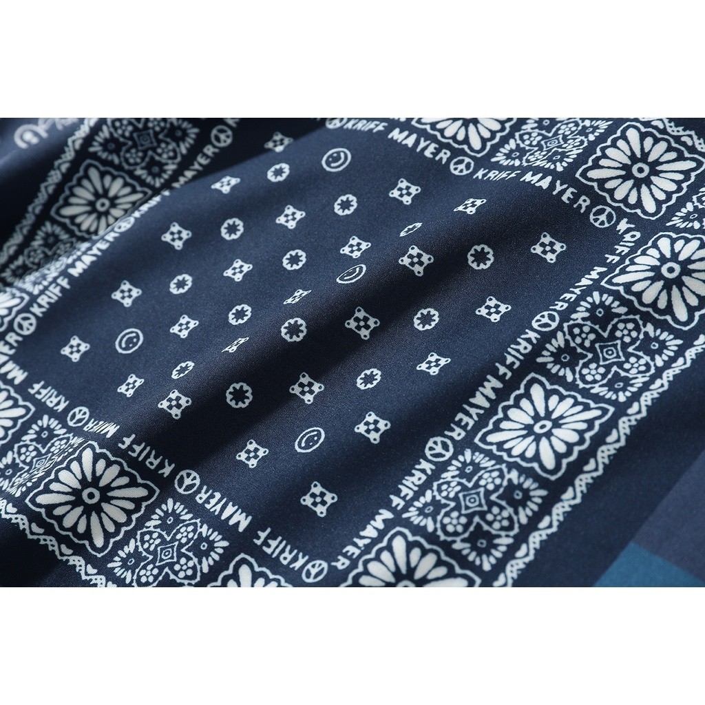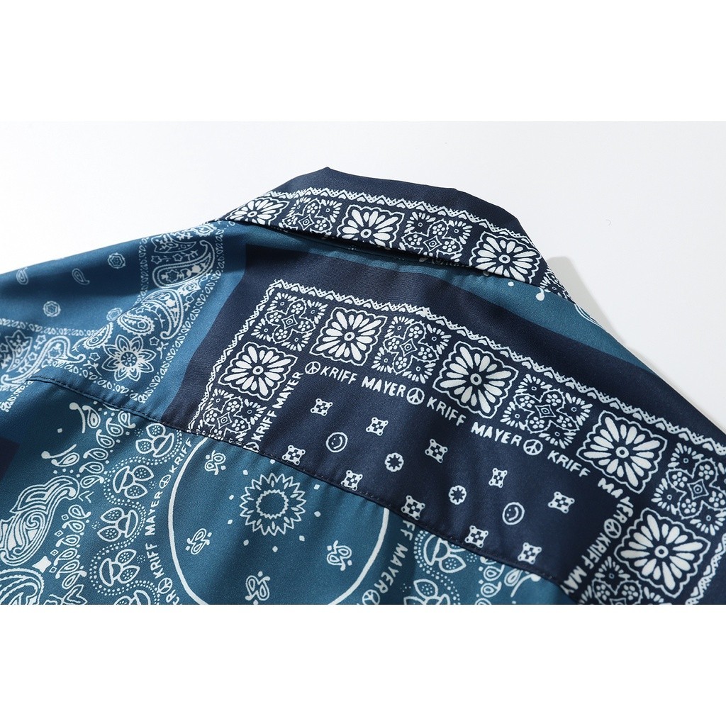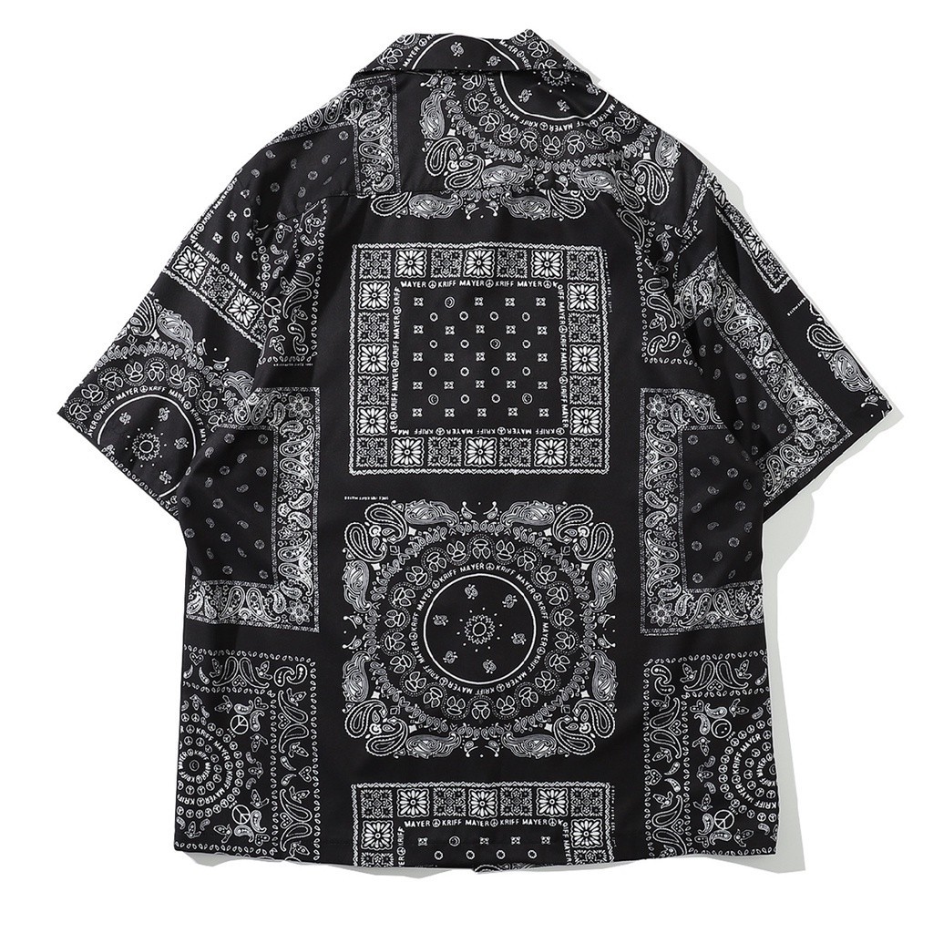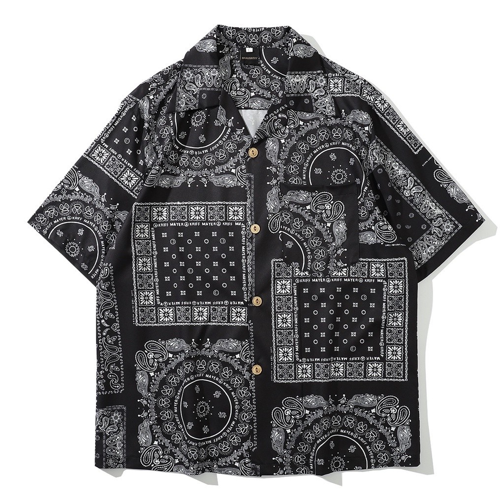 COOLCOOL Stretch Fabrics Cashew Flower Print Blue Black Loose Short Sleeve Casual Beach Shirt for Women and MeN