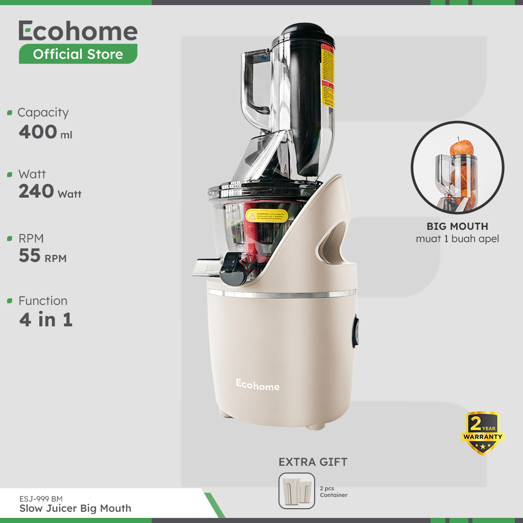 TERLARIS ECOHOME Slow Juicer Big Mouth ESJ999BM 55 RPM Pengekstrak Buah Low Watt Easy Clean Multifungsi