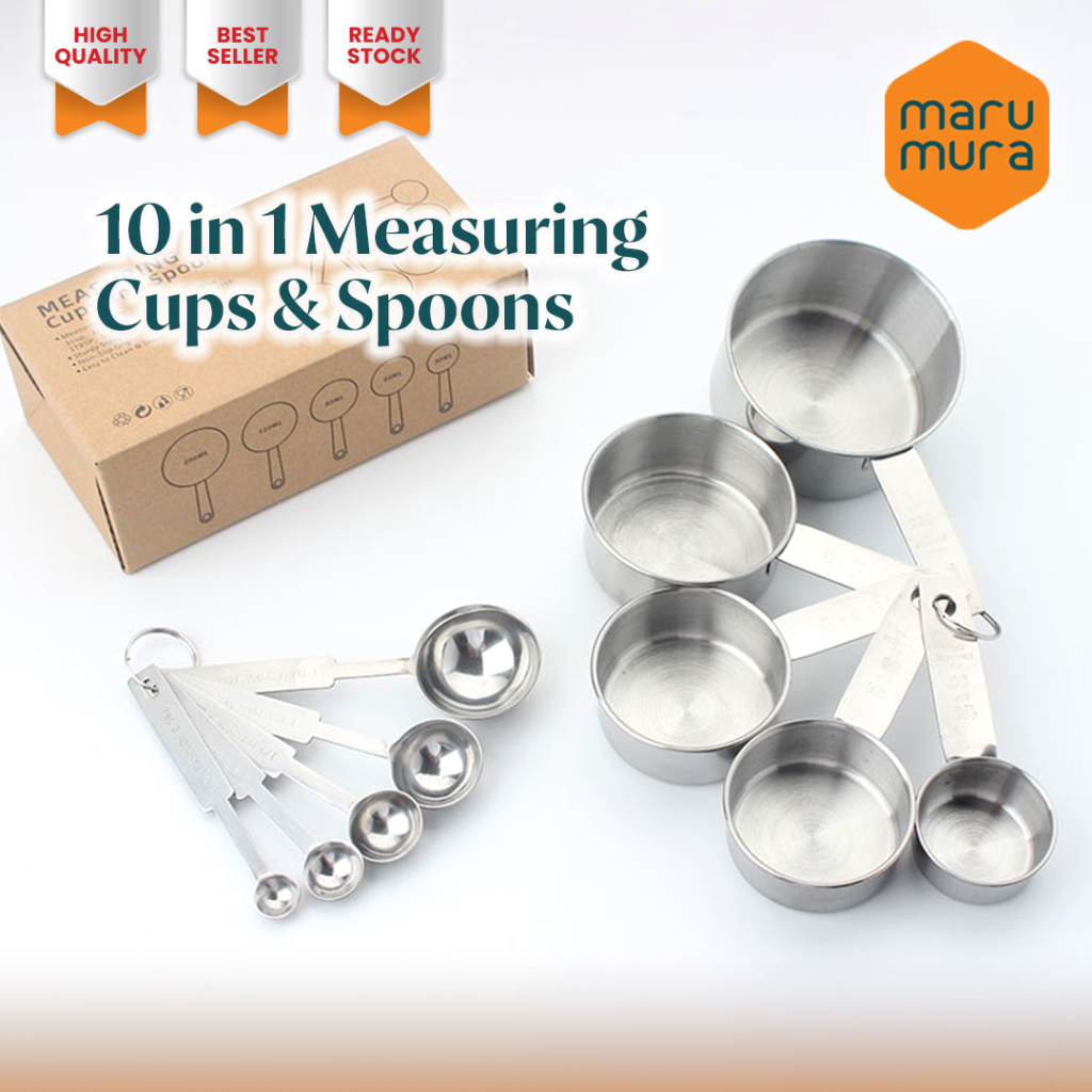 Promo Marumura 10 in 1 Stainless Steel Measuring Cups and Spoon | Gelas Sendok Takar Stainless Steel Set