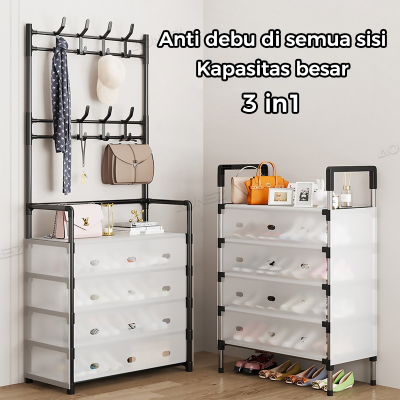 Homes Rak Sepatu Tertutup Anti Debu Rak Sepatu 5/6 Susun Rak Gantung Tas Topi Besi Rak Sepatu Aesthetic Rak Sendal Dan S