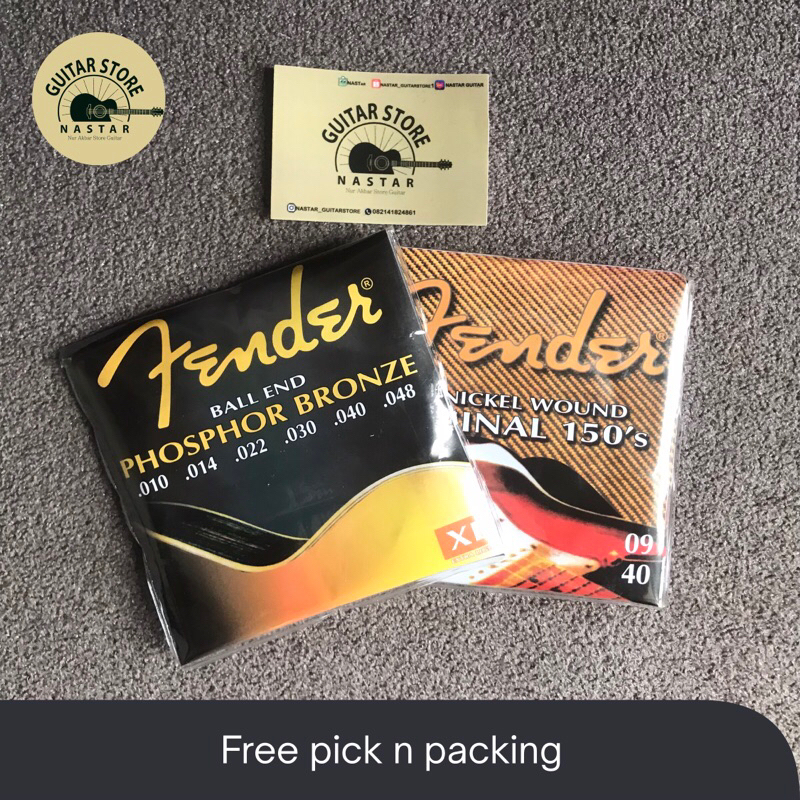 Fender 010 dan 09 free pick senar gitar akustik bagus phospor bronze dan silver plated