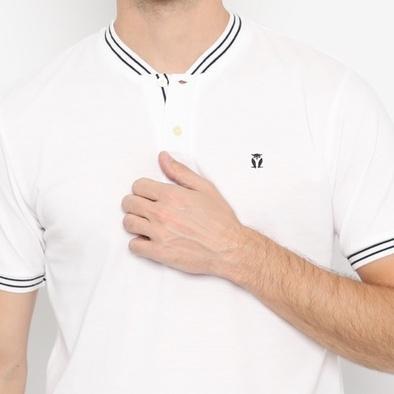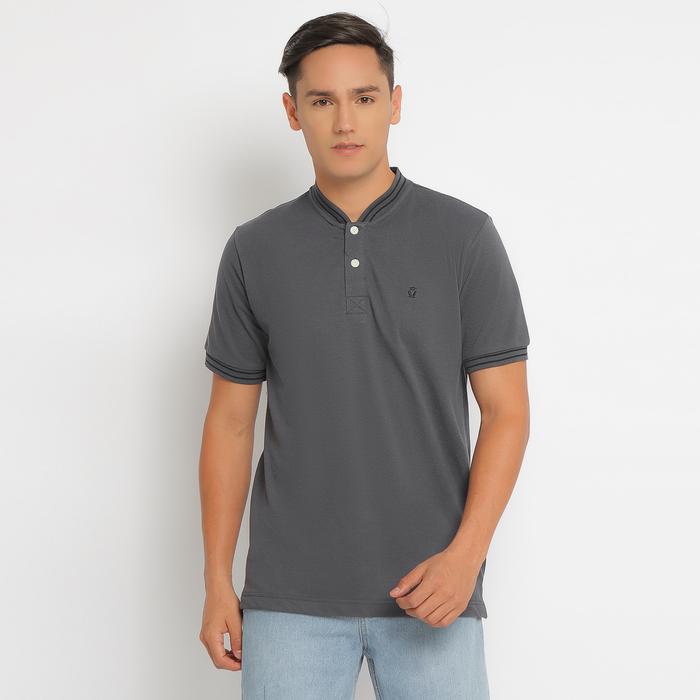 Matsuda Kaos Henley Pique Hino adem Polo Baju Kerah Casual Katun Merah