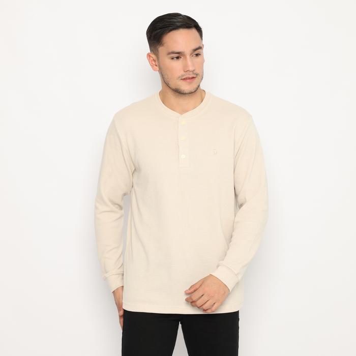 MATSUDA kaos Pria lengan panjang henley waffle katun Miyama Cowok Dewasa