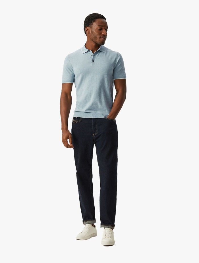 M&S - Polo - Cotton Rich Short Sleeve Knitted Polo Shirt - Light Blue