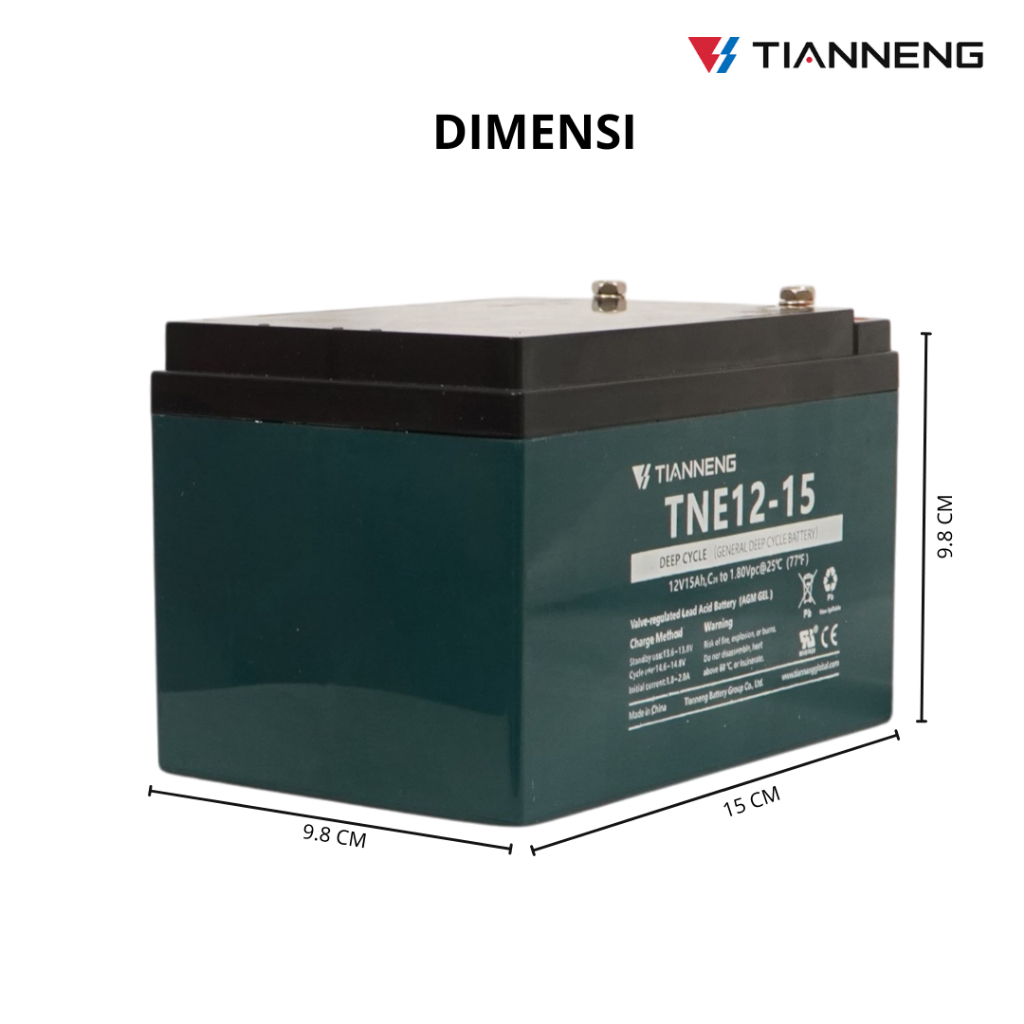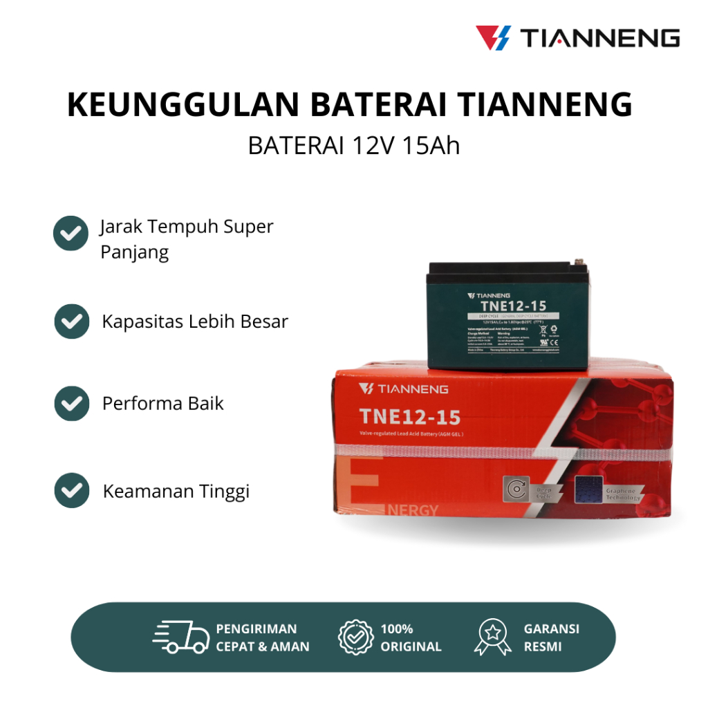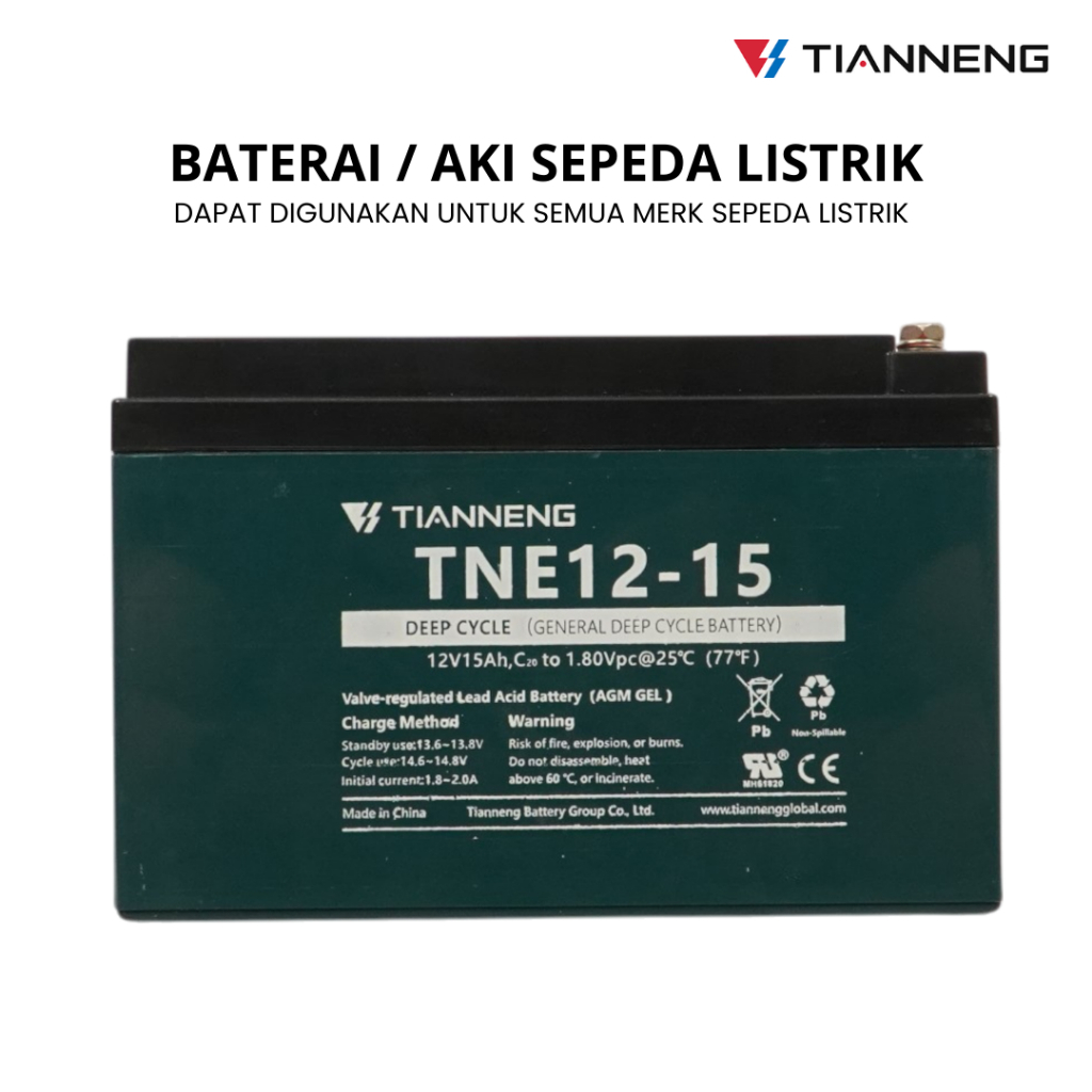 Baterai Aki Sepeda Listrik Tianneng Premium 12V 15AH – Original & Tahan Lama