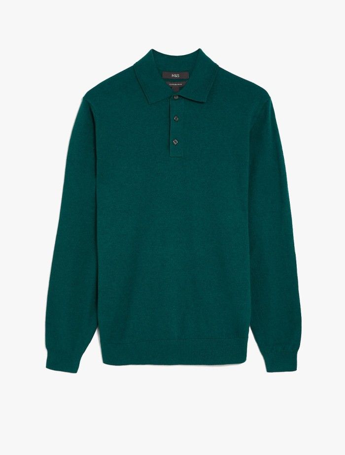 M&S - Kaos Polo - Cotton Rich Tipped Knitted Polo Shirt - Bottle Green