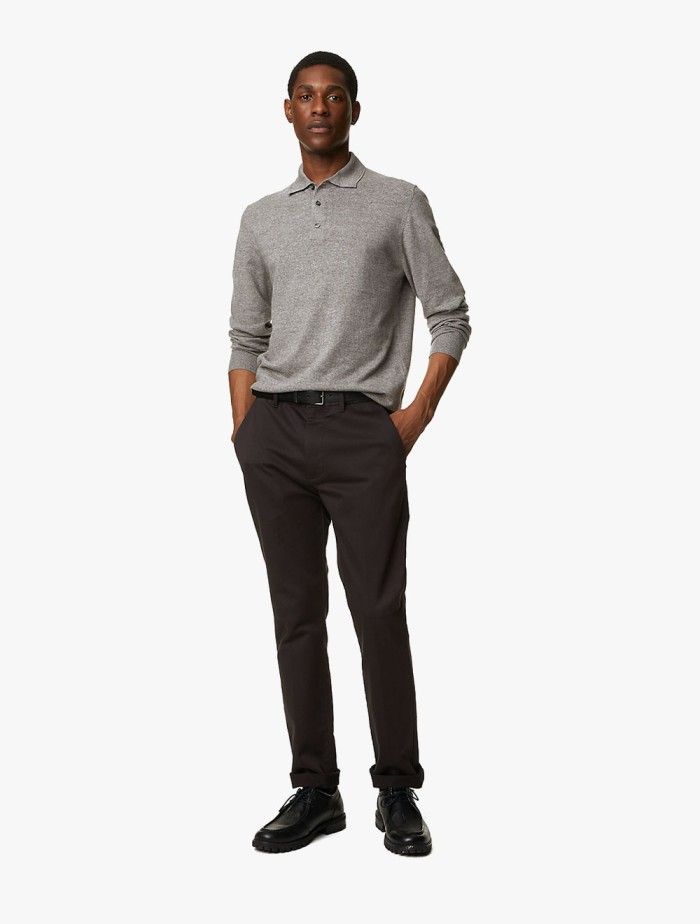 M&S - Kaos Polo Pria - Cotton Rich Tipped Knitted Polo Shirt - Grey