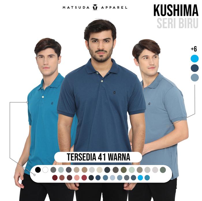 MATSUDA Kaos Polo Shirt Pria Kerah Kushima Seri Warna Biru Katun Navy