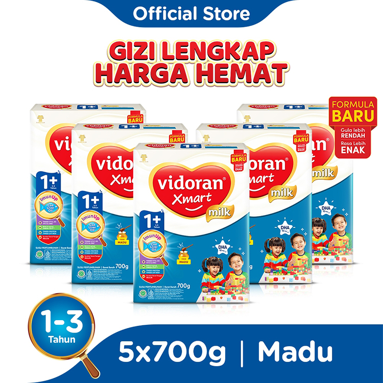vidoran Xmart 1+ Madu 700gr Susu Formula Pertumbuhan Anak 1 3 Tahun 5 box Exp 07.2026 Penawaran Spesial