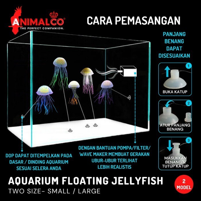TERLARIS AQUASCAPE DECORATION GLOWING FLOATING JELLYFISH ORNAMEN UBUR UBUR DEKORASI AKUARIUM