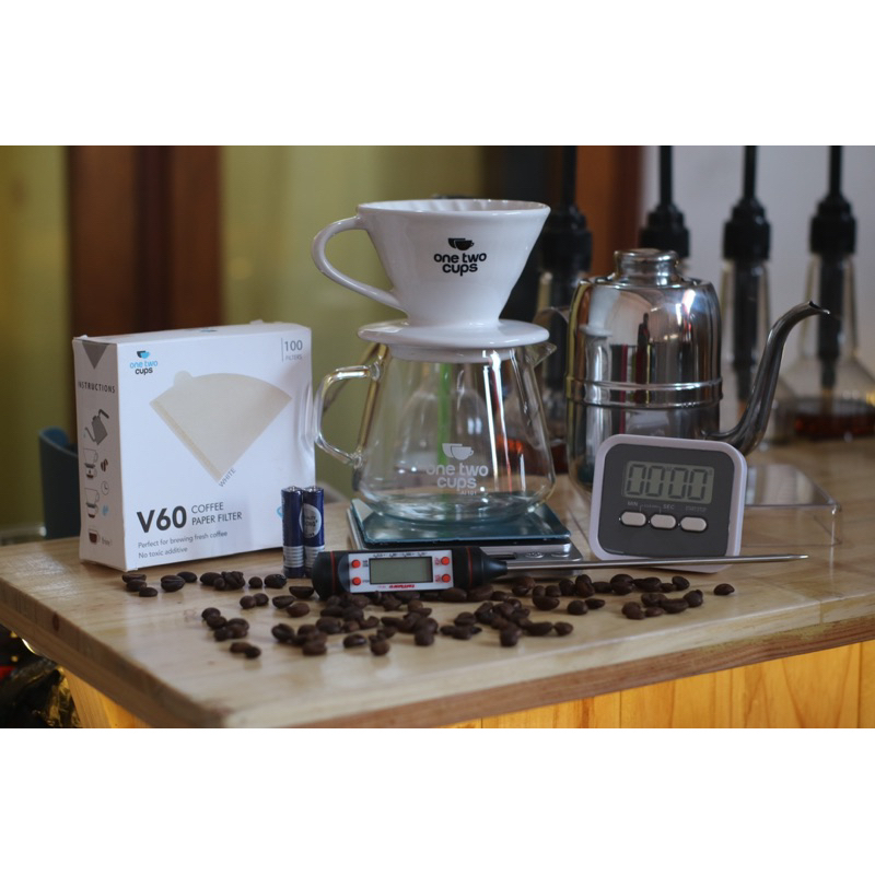 paket seduh kopi V60 rumahan 8IN1 kopi manual brew coffee driper server timbangan kopi timer paper filter thermometer su