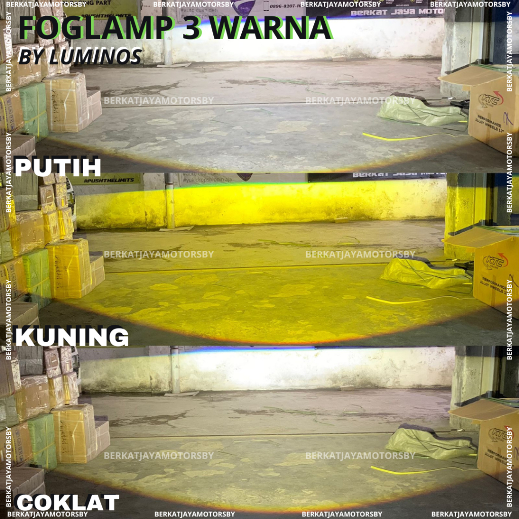 LAMPU LED FOGLAMP LUMINOS 3 WARNA BILED PROJECTOR 3 INCH ORIGINAL LAMPU KABUT LASER MOBIL HI LOW ALL WEATHER