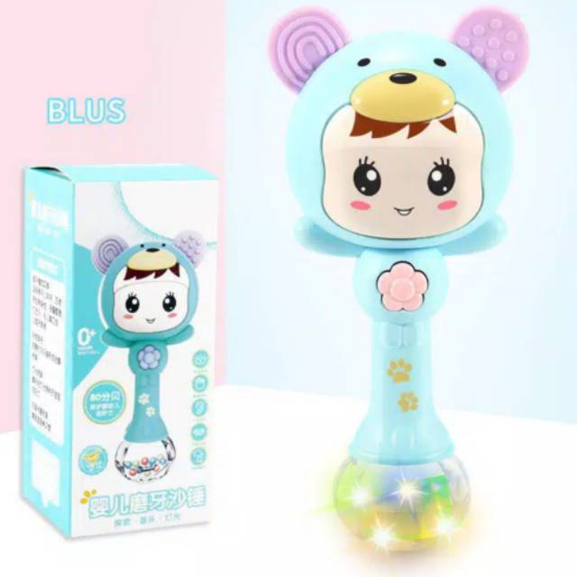 Mainan Bayi Tongkat Rattle + Teether+ Musik + Lampu Kelap Kelip. Termurah