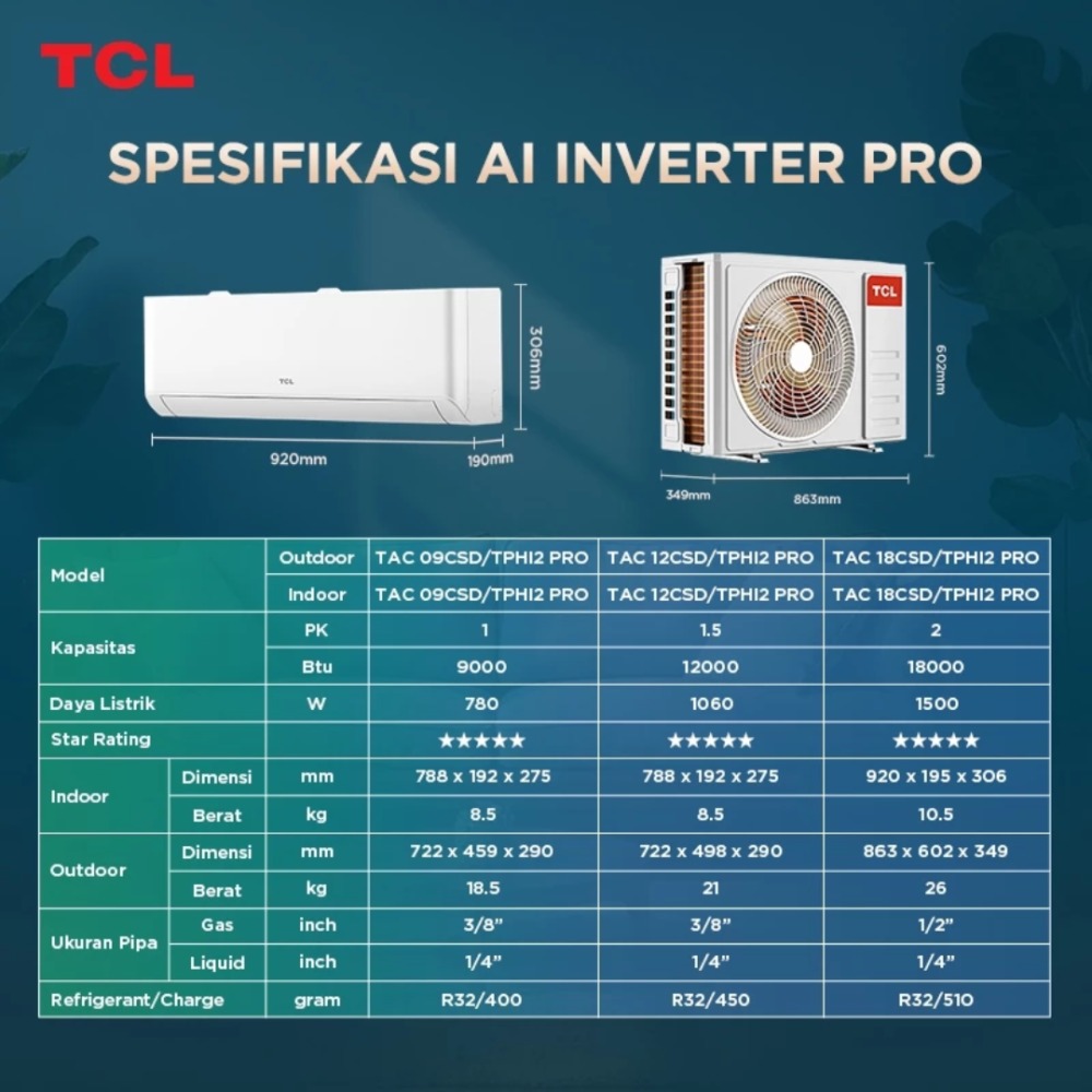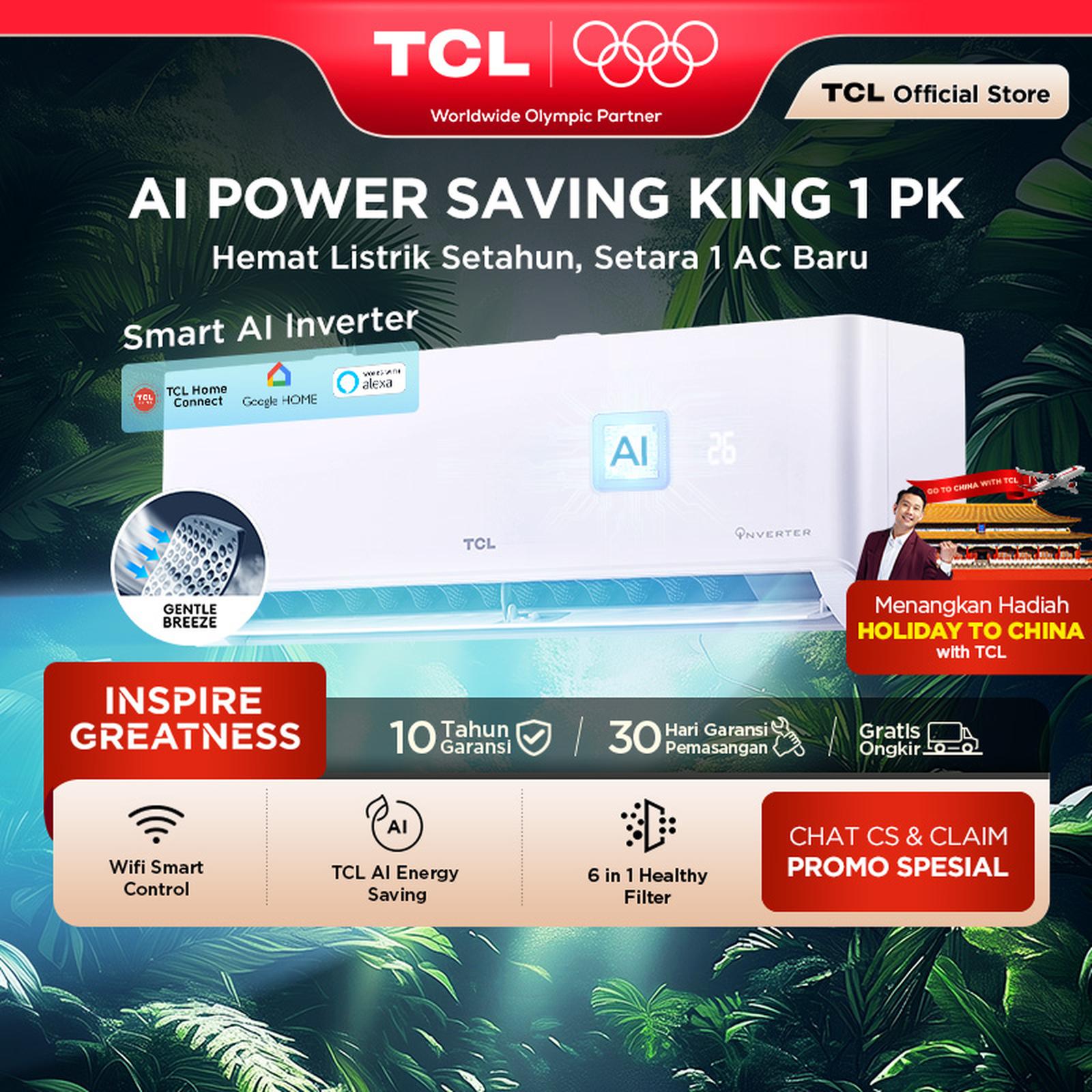 Paket Pasang TCL AC 1PK AI PRO INVERTER AITech Wifi Turbo Cooling Anti Bising Garansi Resmi - Grandivo