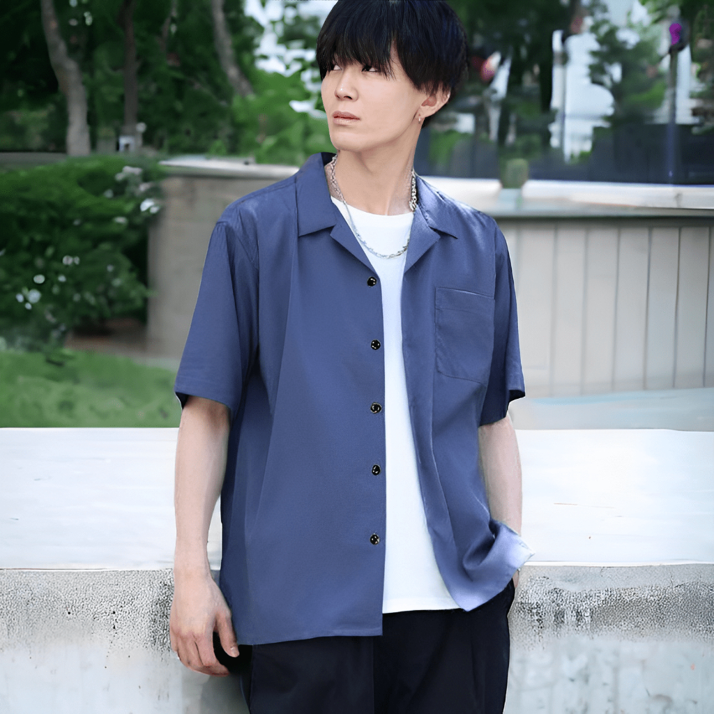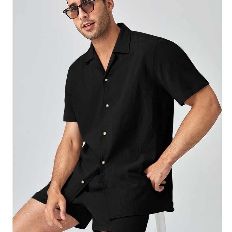 (Gratis Ongkir) Kemeja Vintage Pria Lengan Pendek Kemeja Polos Pria Polos Korean Style
