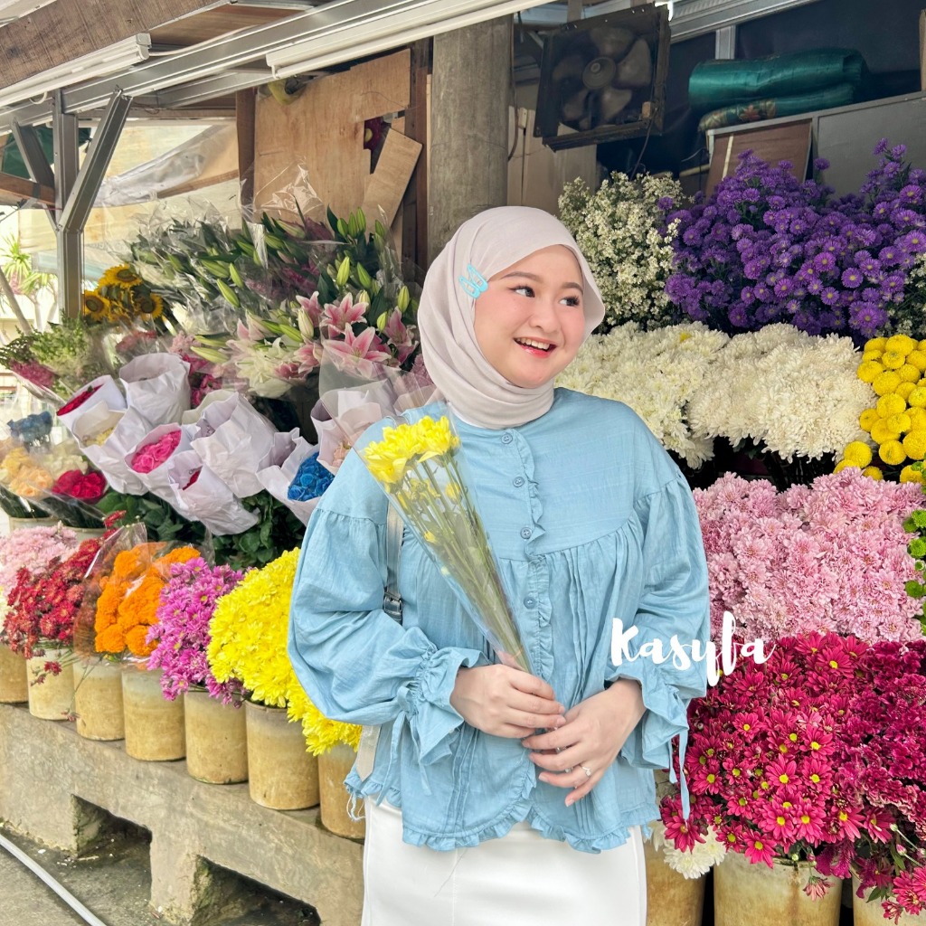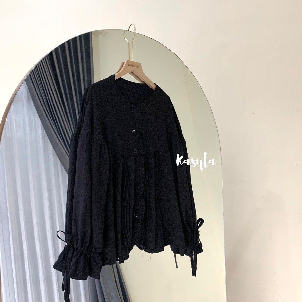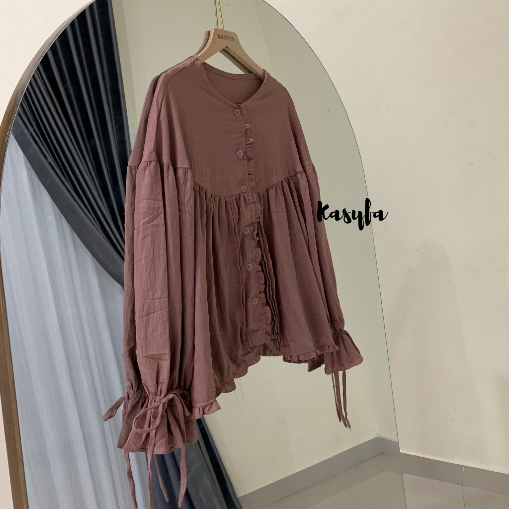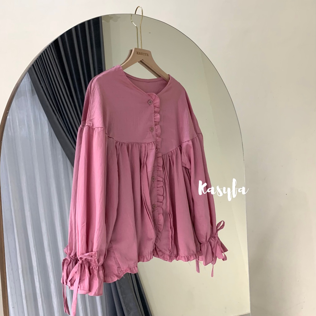 (Gratis Ongkir) CALAYA KEMEJA WANITA REMPEL TALI POLO LINEN