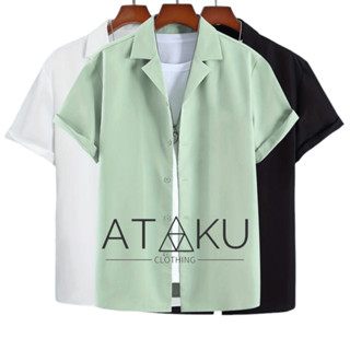 (Gratis Ongkir) Kemeja Vintage Pria Lengan Pendek Kemeja Polos Pria Polos Korean Style