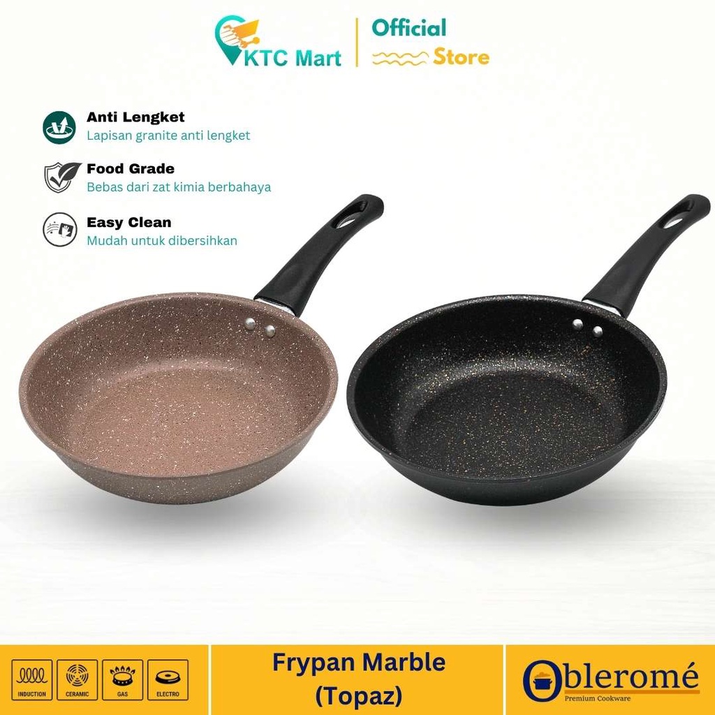 OBLEROME Wajan Goreng Masak Anti Lengket Frypan Granite Marble Anti Lengket Penggorengan Anti Lengket KTCmart