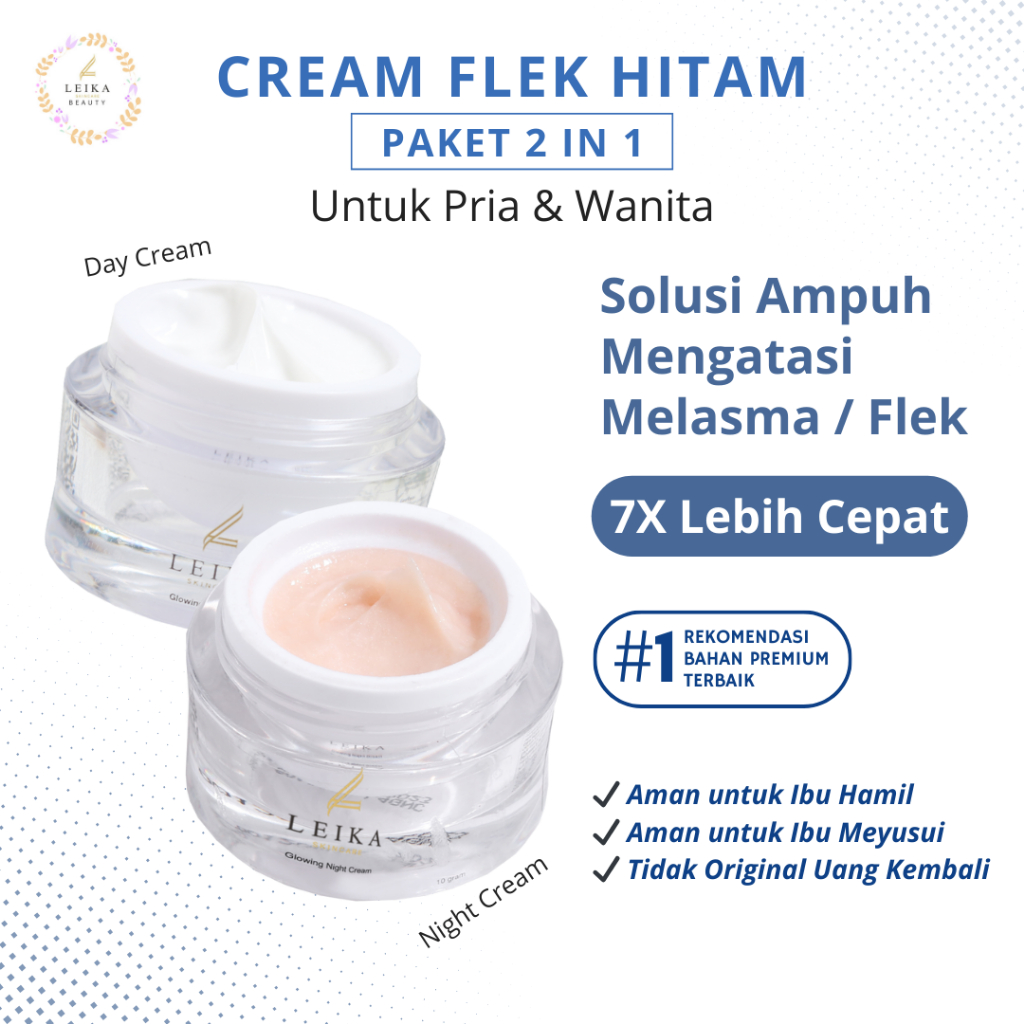 SKINCARE WANITA GLOWING BPOM / PAKET SKINCARE LEIKA 2 IN 1 DAY NIGHT CREAM SKINCARE FLEK HITAM MEMBANDEL ORIGINAL