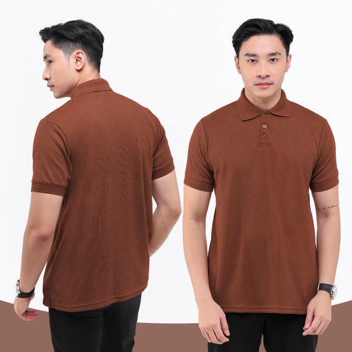 BROGUY Kaos Polo Shirt Pria Waffle KHAKI