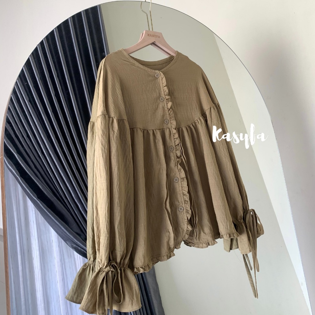 (Gratis Ongkir) CALAYA KEMEJA WANITA REMPEL TALI POLO LINEN