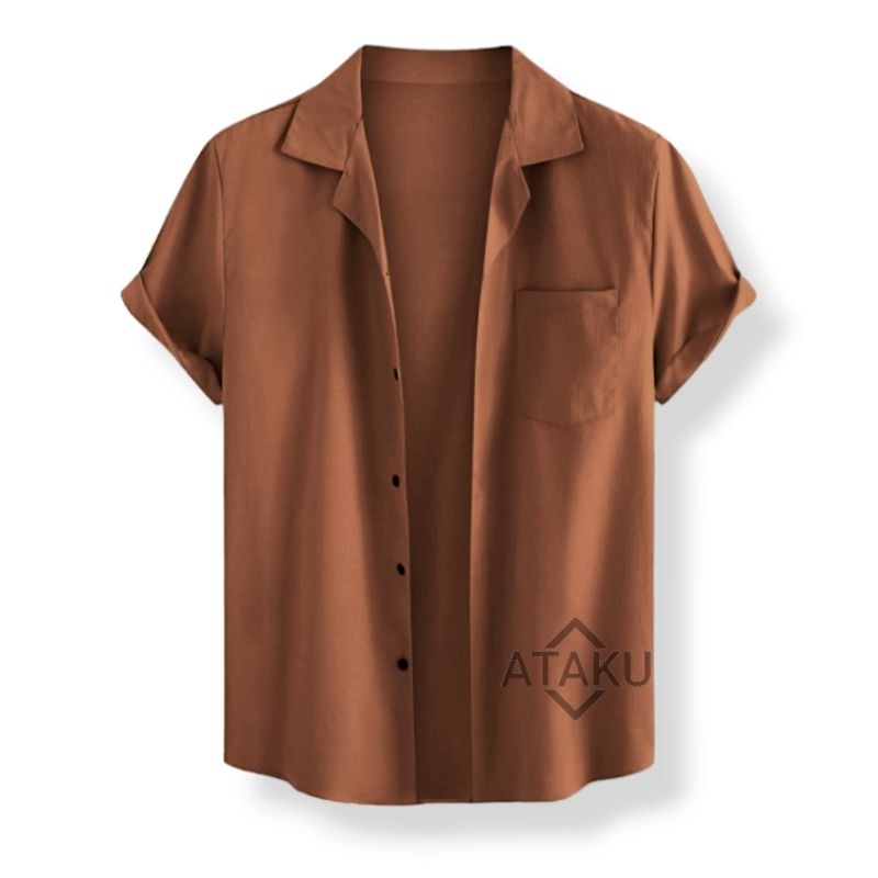 (Gratis Ongkir) Kemeja Vintage Pria Lengan Pendek Kemeja Polos Pria Polos Korean Style