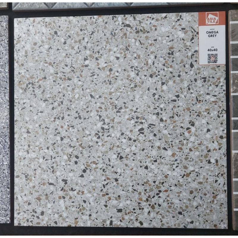 KERAMIK LANTAI Dinding ASIA 40X40 OMEGA GREY Motif Terrazzo Matt