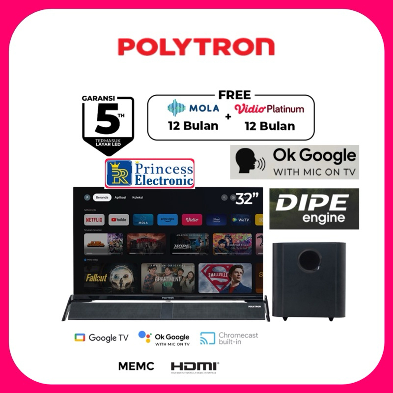 [PROMO] POLYTRON SMART GOOGLE TV WITH SOUND BAR 32 INCH PLD 32BG9058