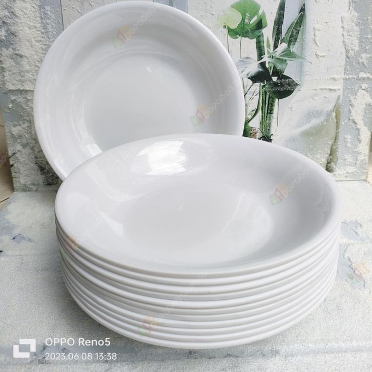 12PCS Piring Makan Bulat Putih Cekung Melamine Original Meishing Food Grade SNI Terbaru Termurah Terlaris Anti Panas