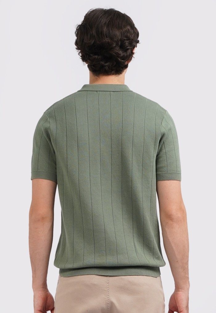 WOOD Short Sleeve Textured Polo Shirt 2-PSILXC125D098 Dusty Green