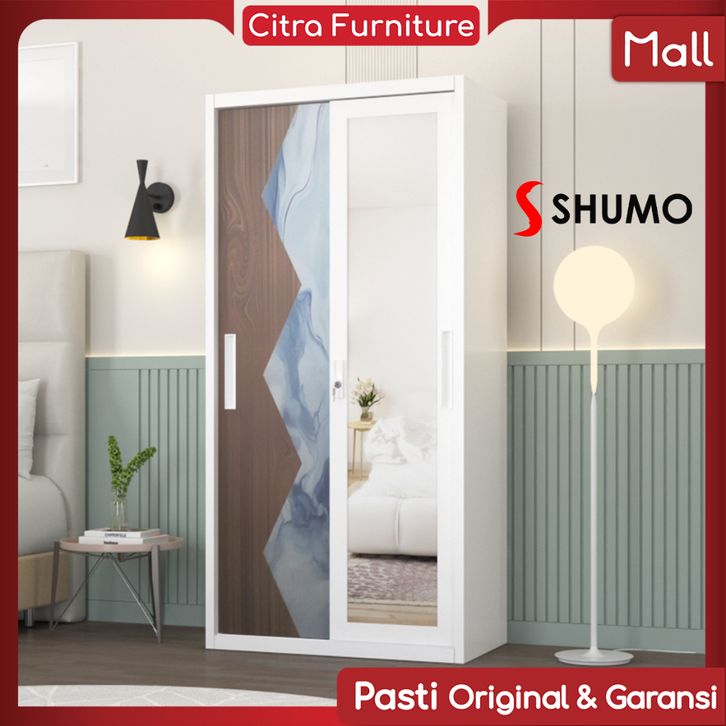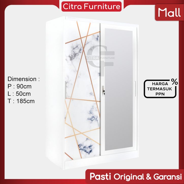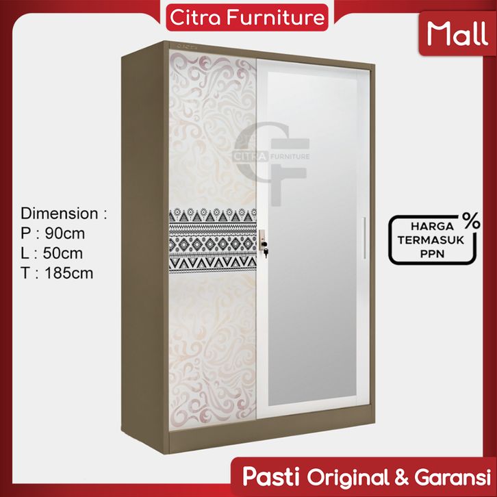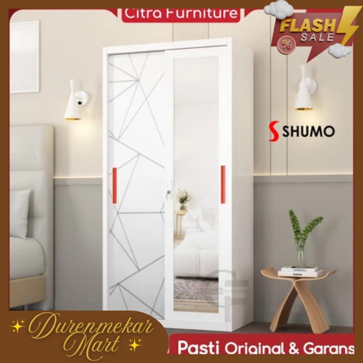 lemari pakaian Citra Furniture SHUMO ® Lemari Pakaian 2 Pintu Besi Sliding Cermin | Lemari Baju Sleding Besi CTR1