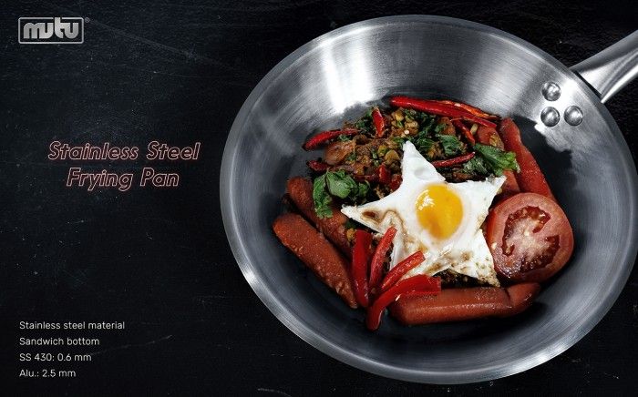 Frying Pan Stainless Steel MUTU 32 28 24 20 cm - Wajan Penggorengan FYP-320 280 240 200 - 200xH50