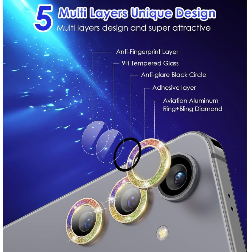 1 Set RING GLITTER Camera Samsung A55 5G A35 A25 A15 A06 A16 A36 A05s A05 A54 A34 A24 A14 Tempered Glass Gliter Diamond