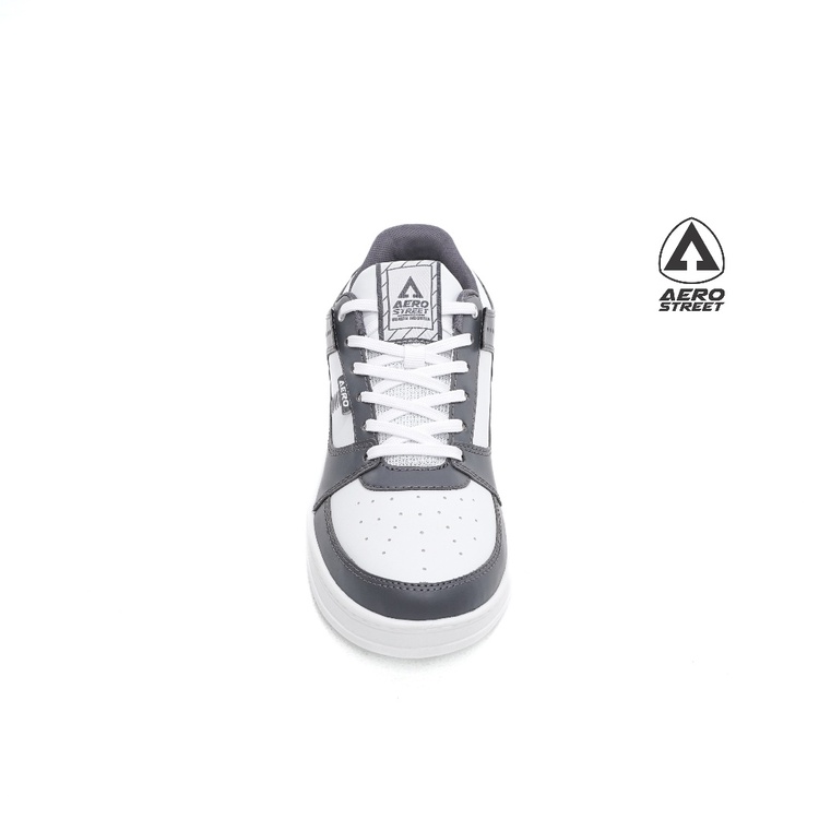 Promo Sepatu Sneakers Casual Pria Aerostreet Hoops Low 2.0 Putih Abu Tua - Sepatu Santai Yang Bisa Dipakai Sehari-hari