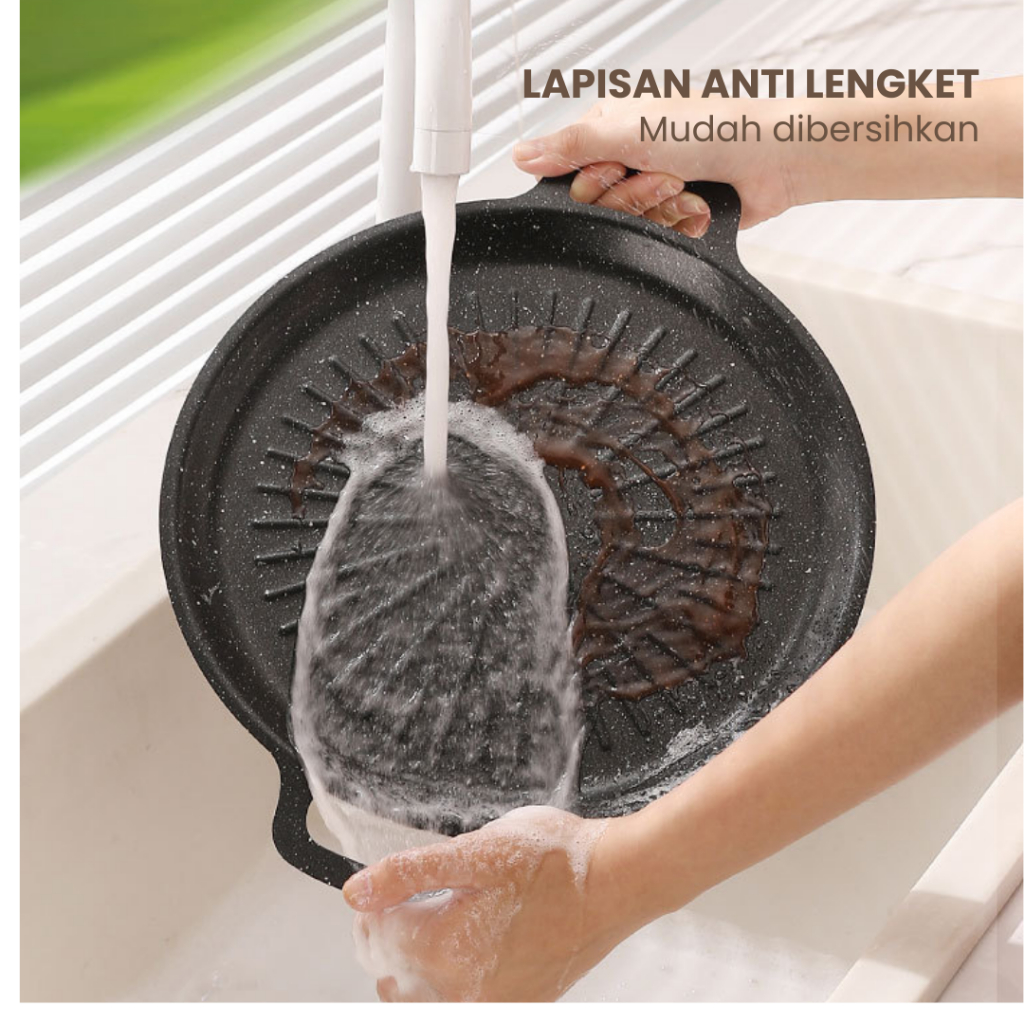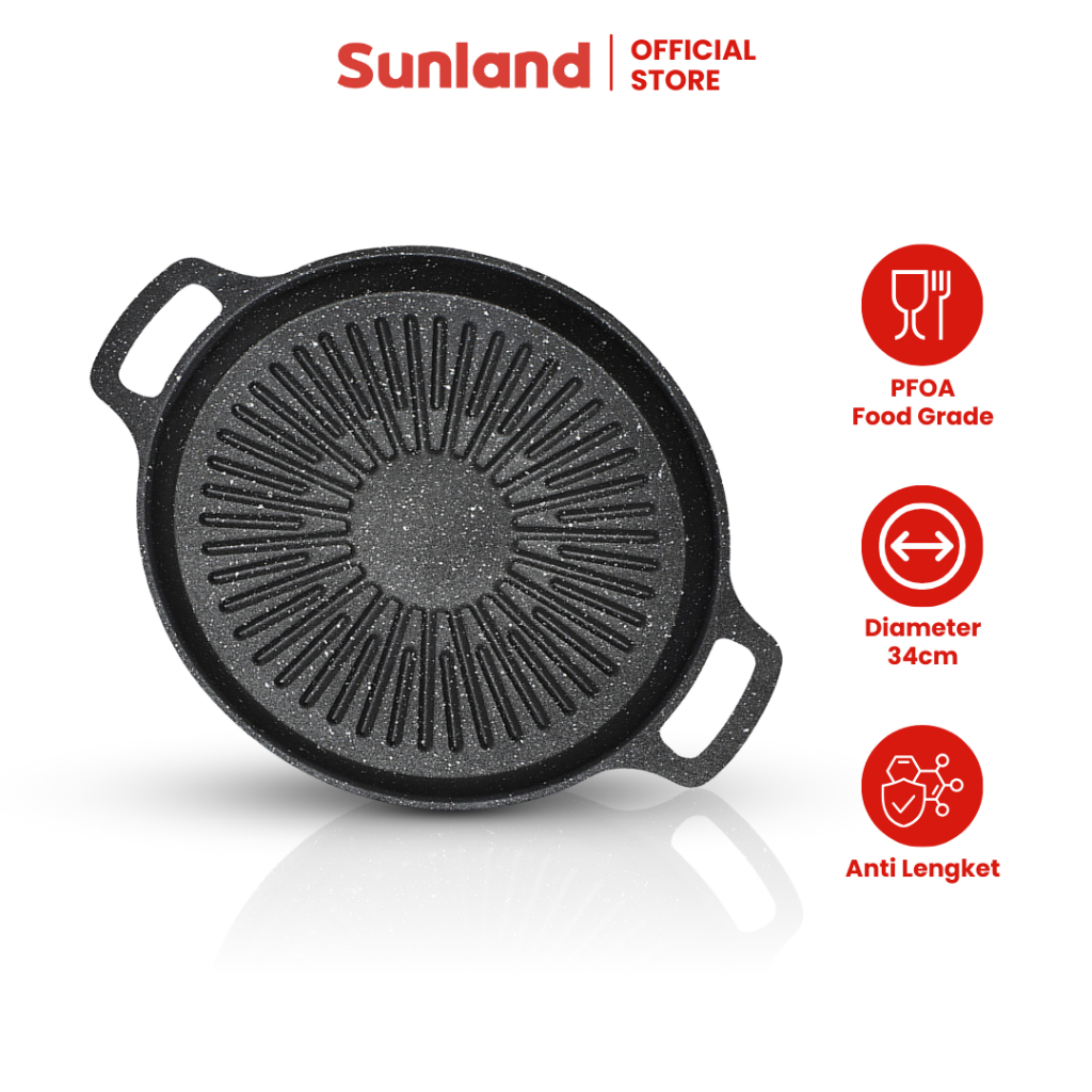 PROMO SUNLAND Grill Pan 34 CM Wajan Pemanggang Bulat Panggangan BBQ Anti Lengket