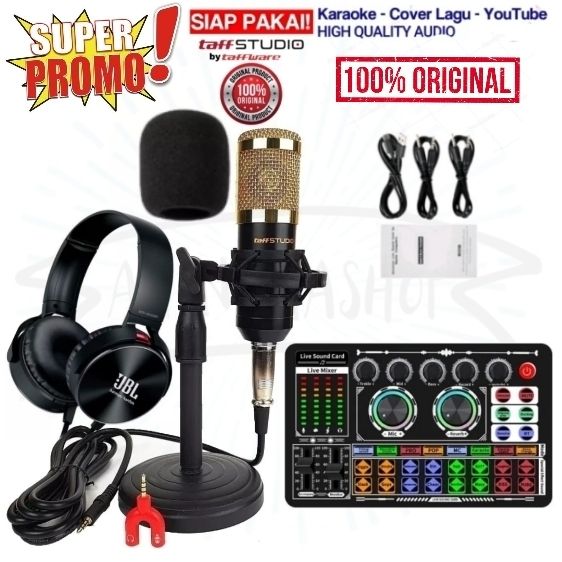 GRATIS Headphone Paket Rekaman Mic Condenser BM800 + Stand Meja + Soundcard V8 Podcast Karaoke