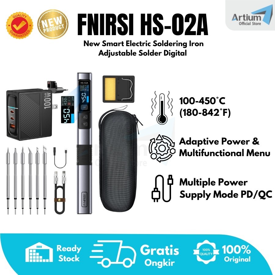FNIRSI HS-02A Smart Electric Soldering Iron | Portable Adjustable Solder Digital 100 - 450 ℃ | Compatible Solder Tip Car