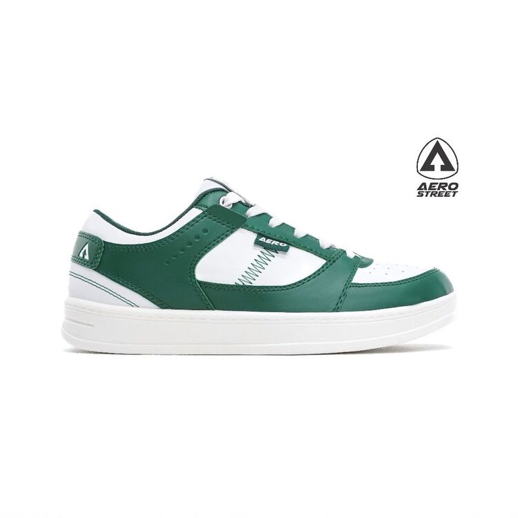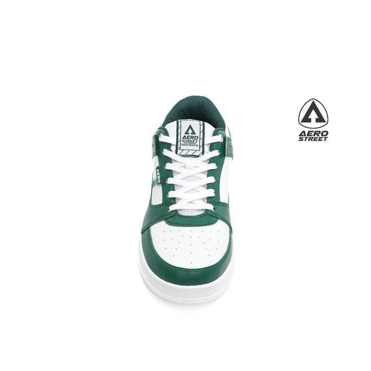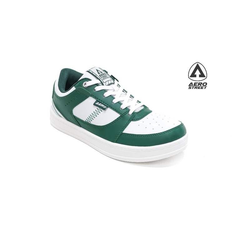 Promo Sepatu Sneakers Casual Pria Aerostreet Hoops Low 2.0 Putih Hijau Tua - Sepatu Santai Yang Bisa Dipakai Sehari-hari